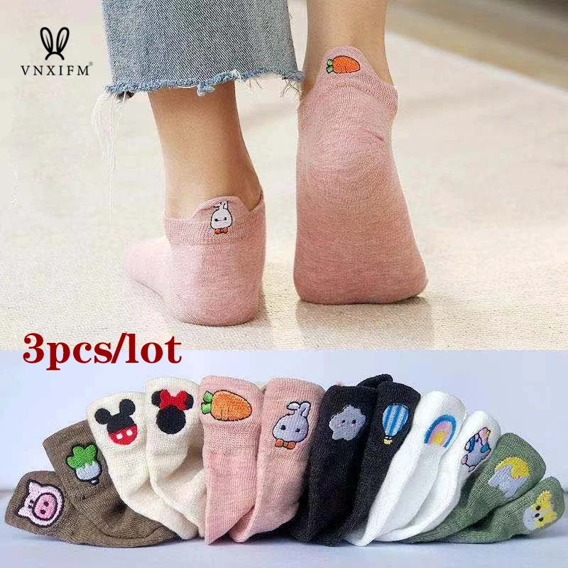 Vnxifm 3 партлот женские носки с мультяшной вышивкой щенок овощи 20 узоров женские носки до щиколотки эластичные хлопковые милые носки для девочек