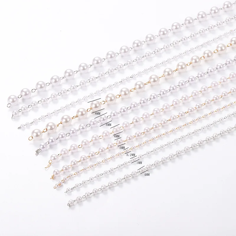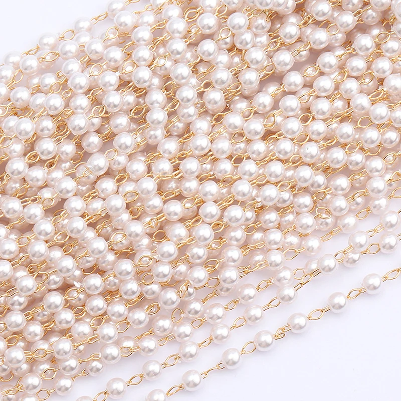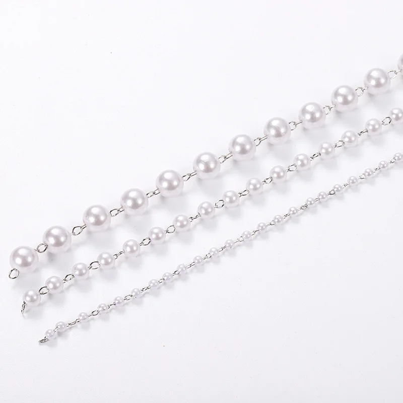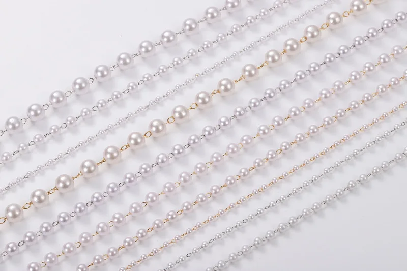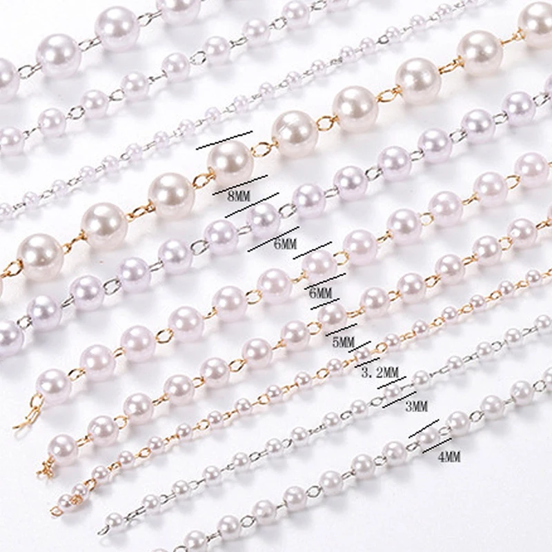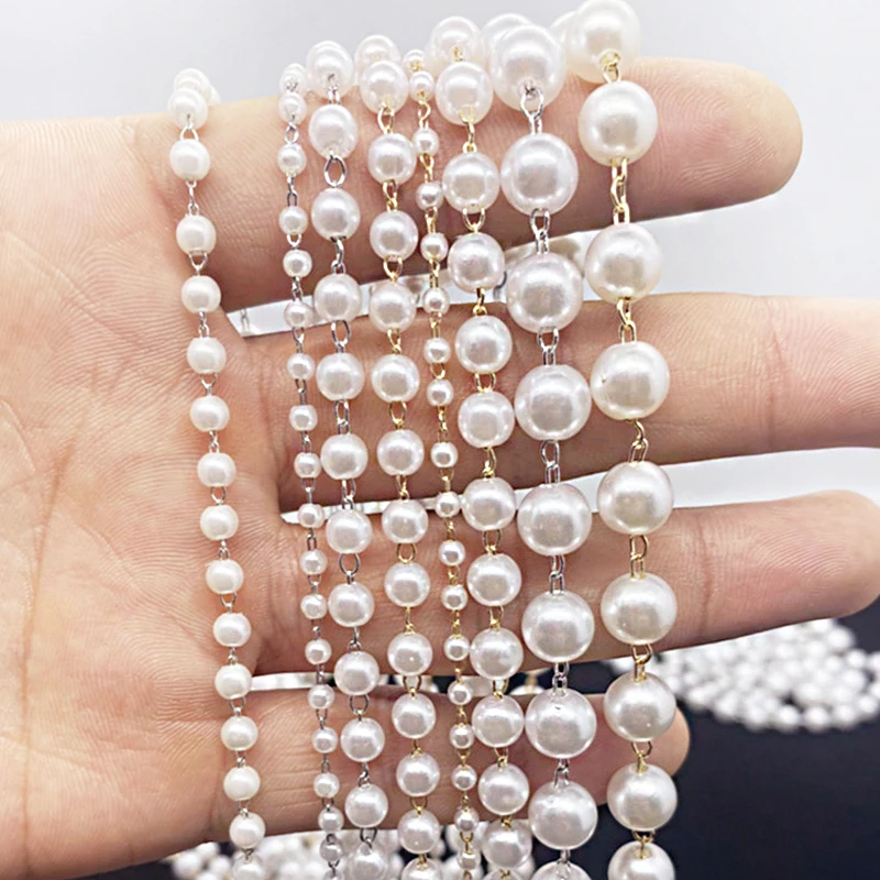 Цепочка с имитацией жемчуга и бусинами для ожерелья, чокера, браслета сделай сам, детали для изготовления ювелирных изделий, 1 метр
