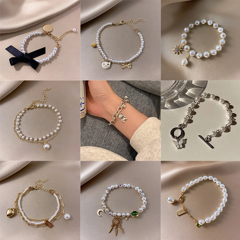 Лидер продаж, модный суперсказочный жемчужный браслет с подвеской в виде бабочки, Женский темпераментный подходящий ко всему винтажный подарок для девушки