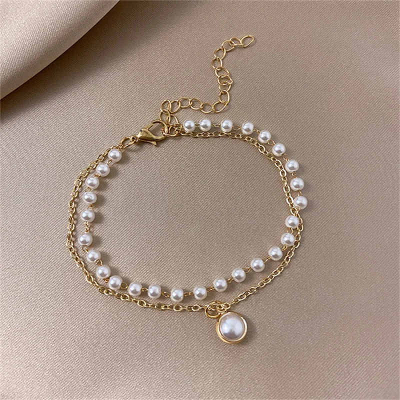 Винтажные Многослойные браслеты из жемчуга, женские браслеты с подв...