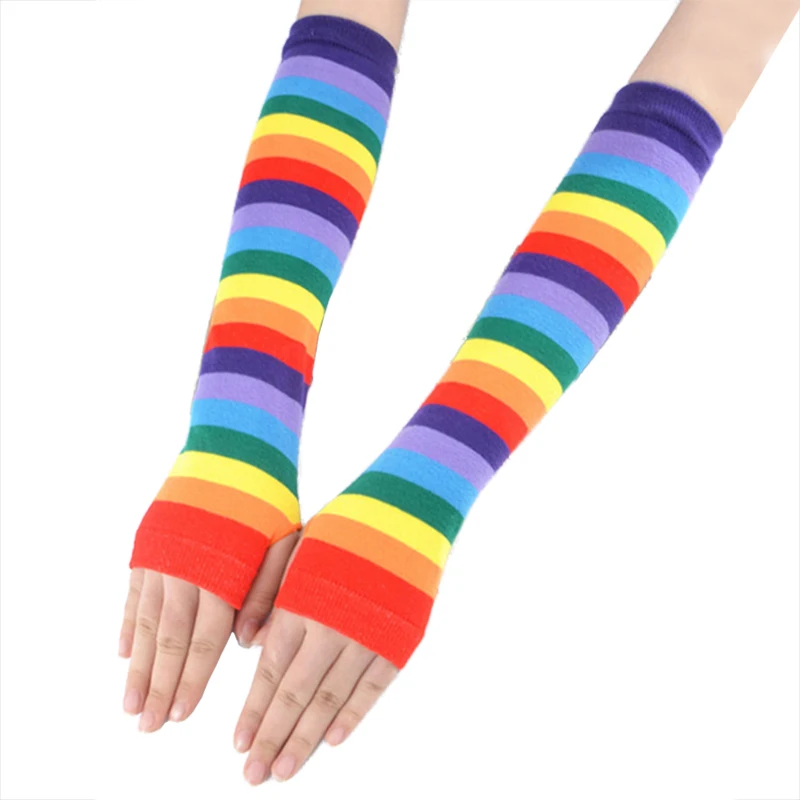 Новинка до локтя, без пальцев перчатки в готическом стиле женские рукава теплые радужные цветные полосатые вязаные солнцезащитные костюмы варежки без пальцев
