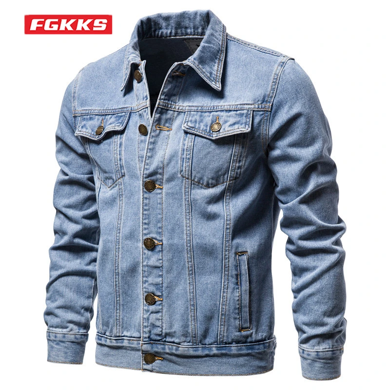 Мужская джинсовая куртка FGKKS, однотонная однобортная куртка из джинсовой ткани, приталенный силуэт, на весну-осень