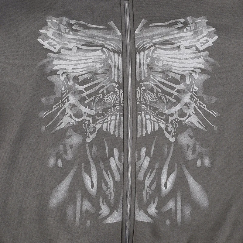 Y2K гранж-панк толстовки большого размера с принтом бабочки черепа ...