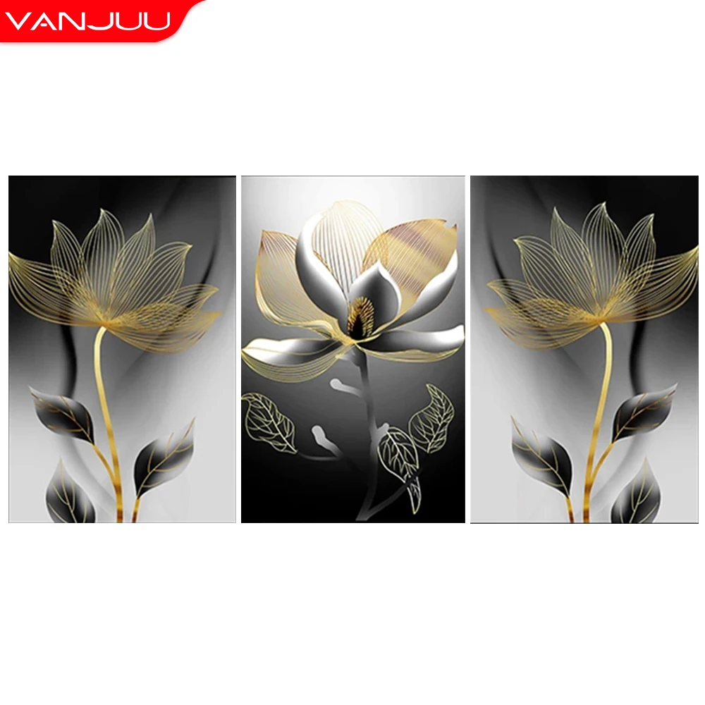 VANJUU 5D алмазная живопись, цветы, круглые бриллиантовые фотонабор...