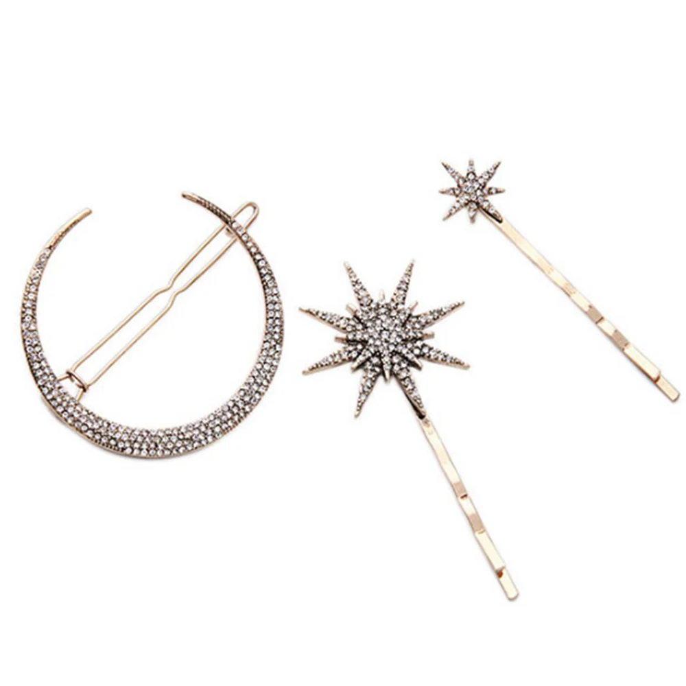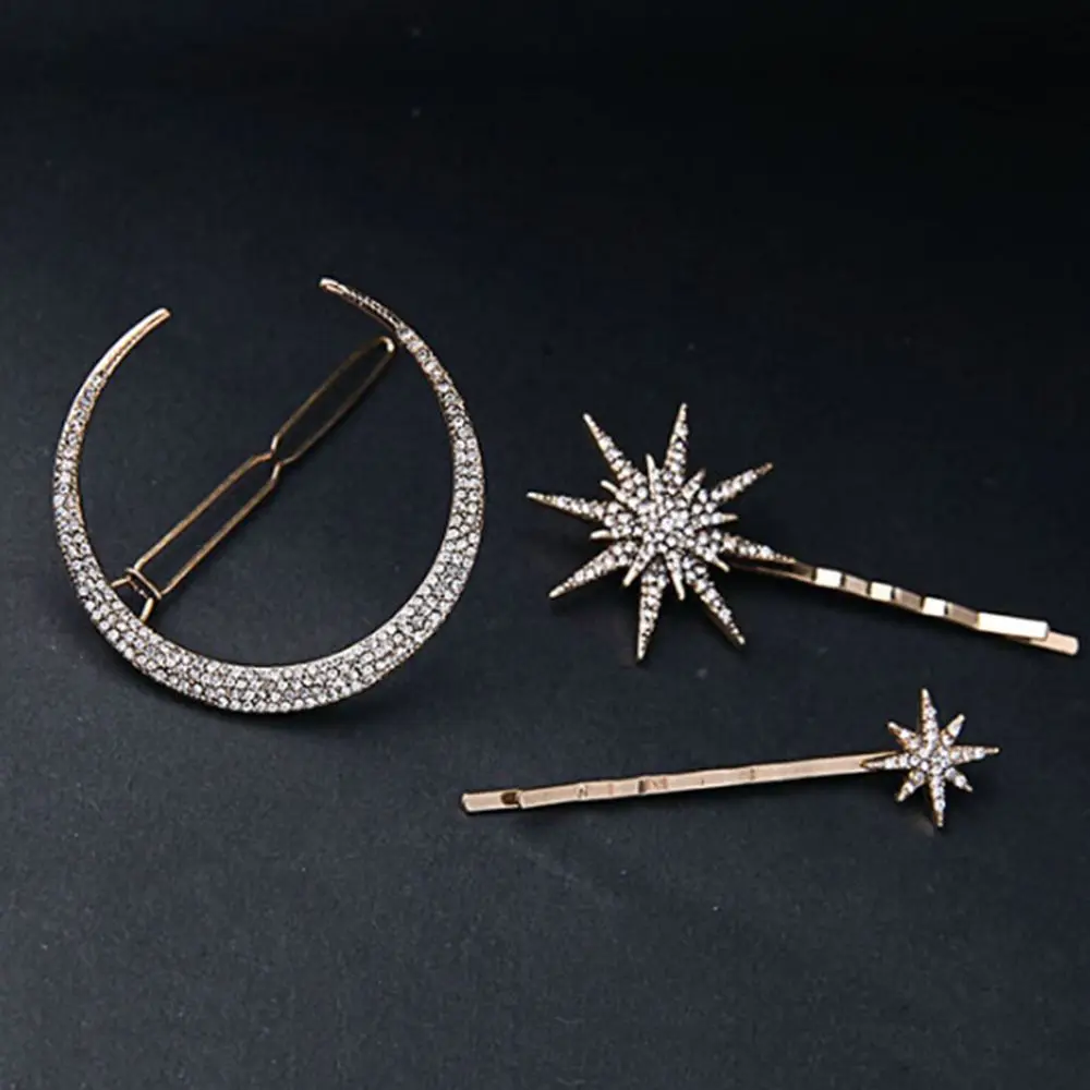 Модные стразы, звездочки, заколки для волос в форме Луны для женщин...