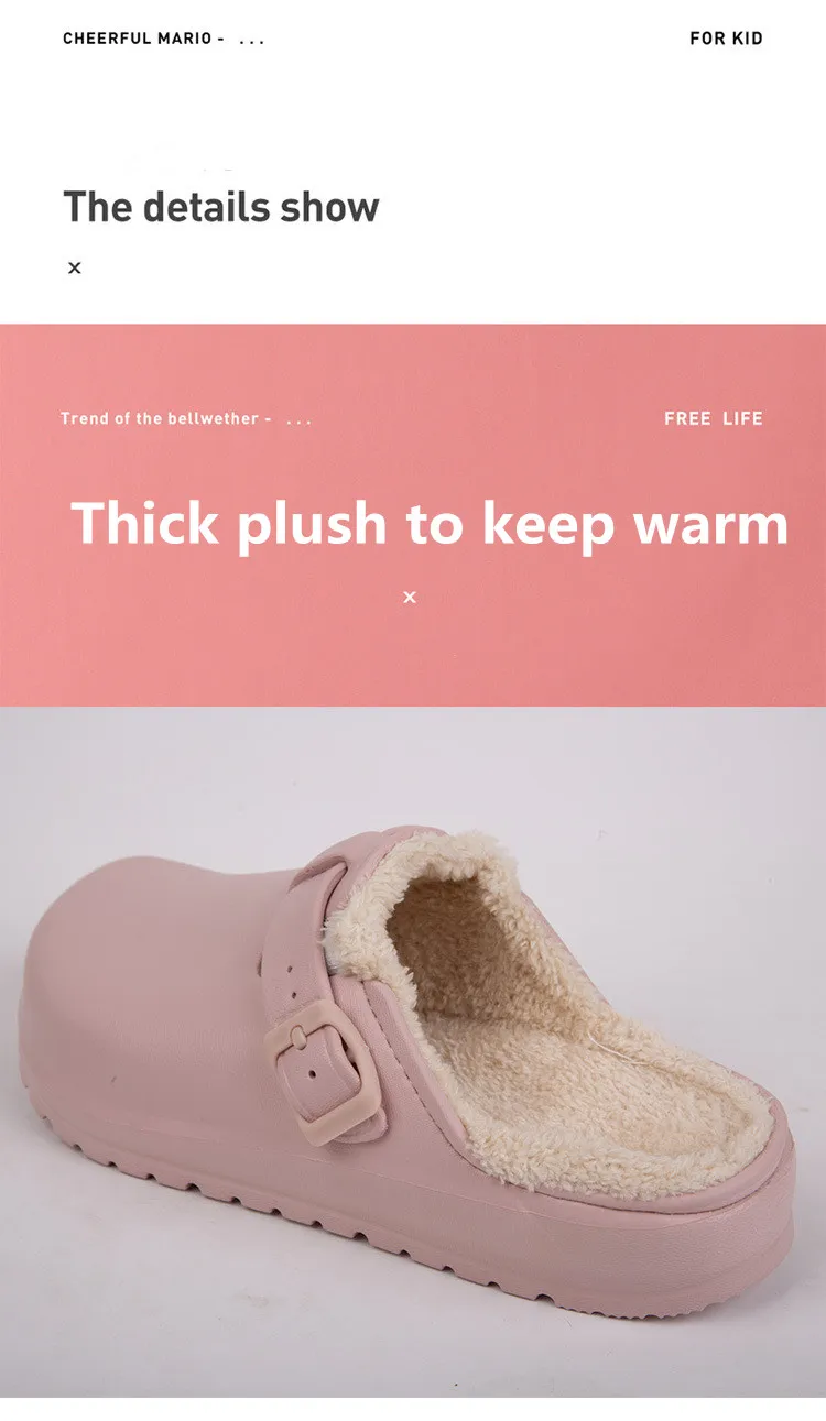 Новинка 2022 года; Сезон Зима; Водонепроницаемые сабо для медсестры; Женская обувь из искусственной кожи; Теплые пушистые хлопковые шлепанцы с пряжкой; Домашние тапочки размера плюс 45