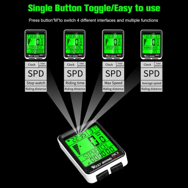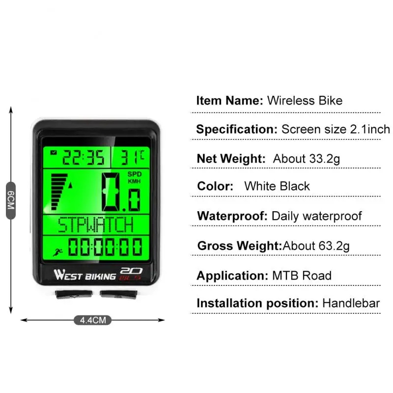 Характеристики: часы, светодиодный индикатор подсветки, секундомер, скорость тока, температура, средняя скорость/Максимальная скорость