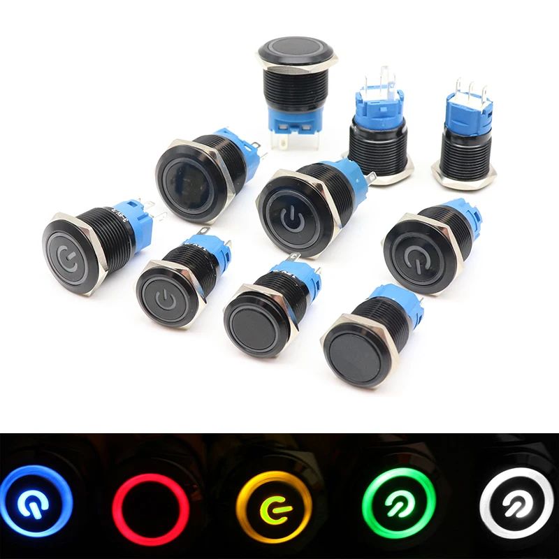 Кнопочный переключатель 12161922 мм, окисленный черный цвет, выключатель без фиксации, фиксированный переключатель питания ВКЛ.ВЫКЛ., светодиодная лампа, 3 в, 6 в, 12 В, 24 В, 220 В