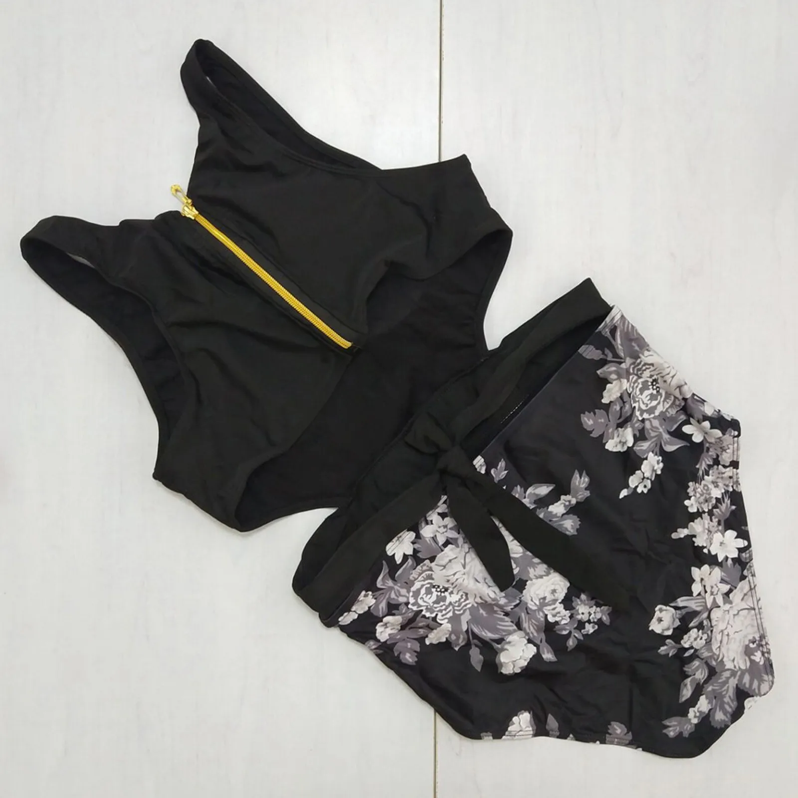 Женский сплошной купальник, бикини с цветочным принтом, купальник, ...