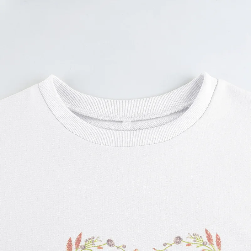 Свитшот с вышивкой в виде грибов в стиле Харадзюку, с круглым вырез...