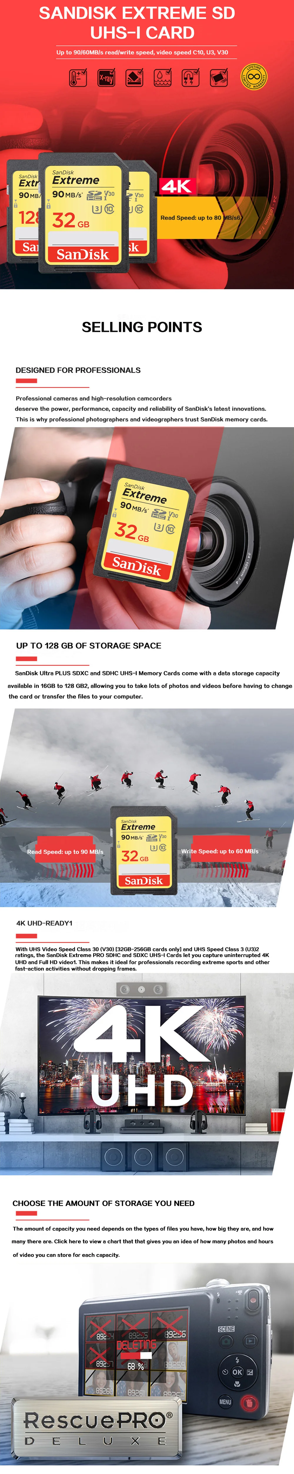 Карта памяти SanDisk Ultra Extreme Pro, SD-карта 32 Гб 64 Гб 128 ГБ 256 ГБ 512 ГБ ТБ SDHCSDXC Class10 U1 U3 4K, флэш-карта для камеры