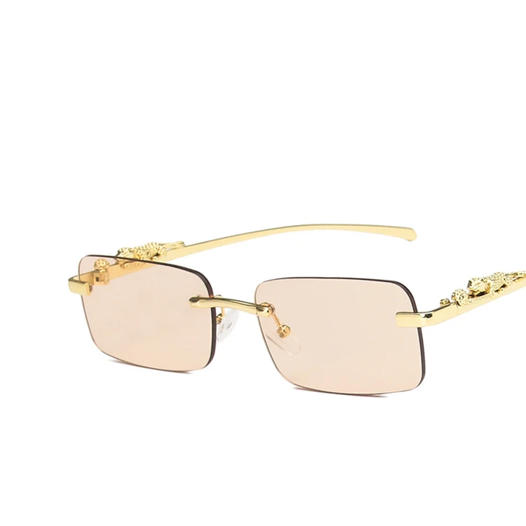Солнцезащитные очки без оправы с режущими линзами винтажные женские мужские прозрачные чайные Индивидуальные дизайнерские солнцезащитные очки для улицы UV400