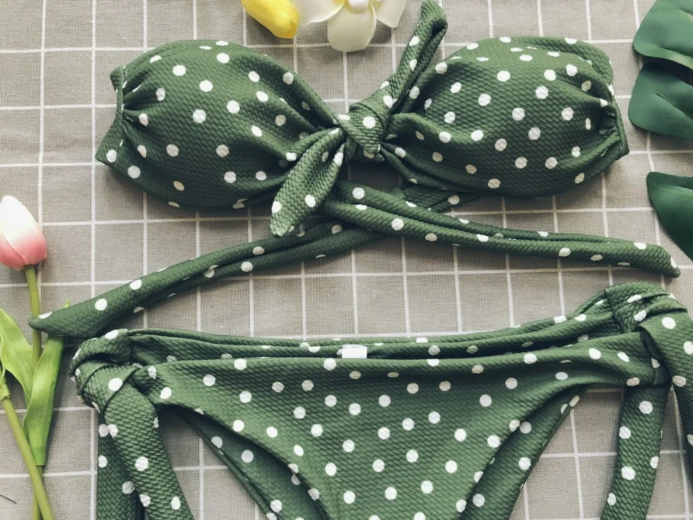 Женский комплект бикини в горошек, без бретелек, с чашками пуш-ап