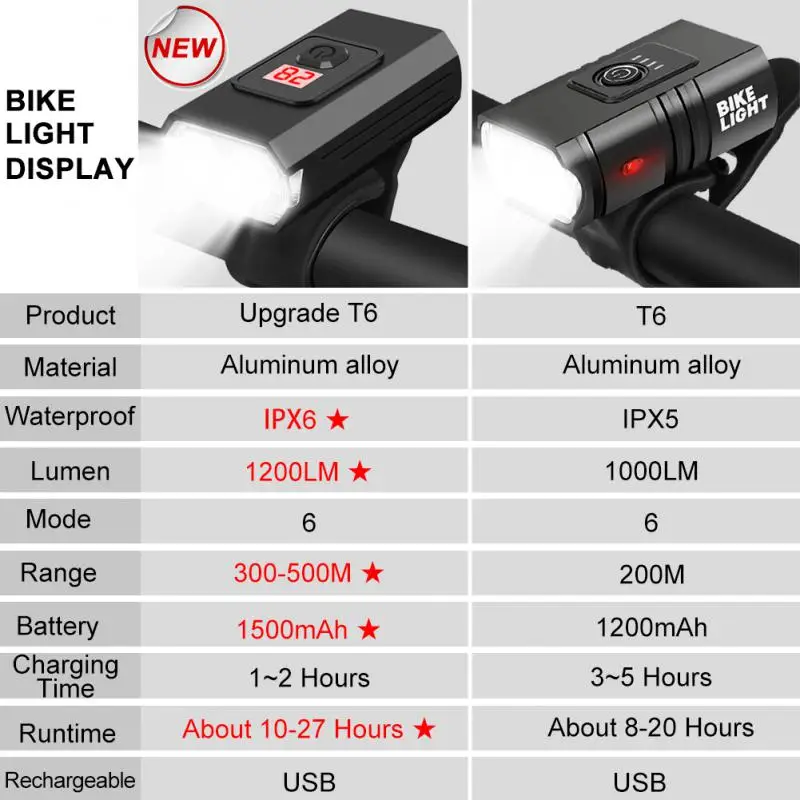 Chip мощный чип, фитиль высокой яркости: уменьшает потребление энергии, очищает путь вперед (1000 люменов/200 метров в дальнем диапазоне)