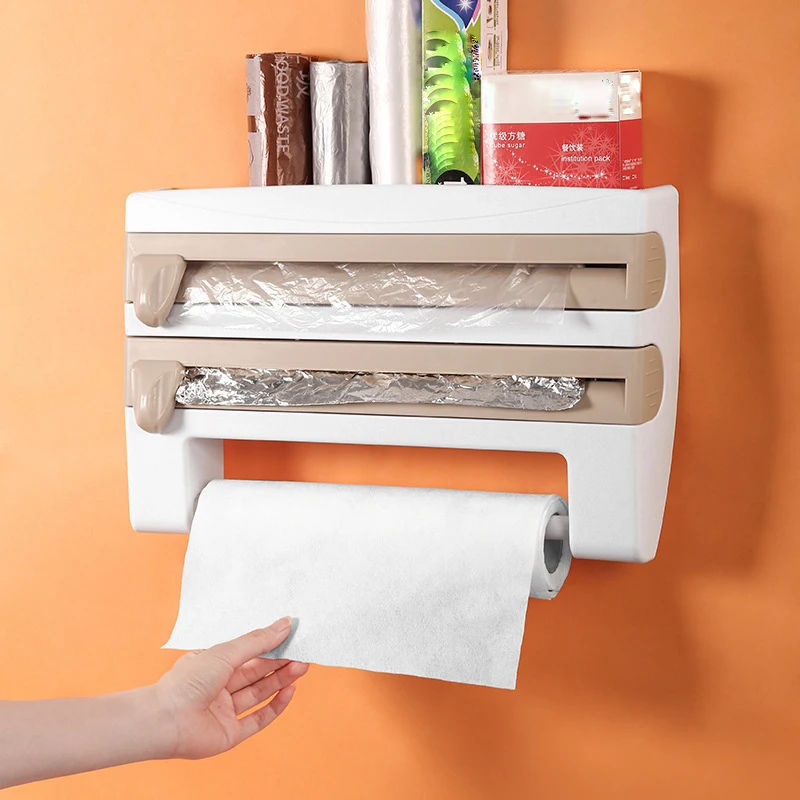 Многофункциональный кухонный органайзер для пластиковой упаковки, настенный стеллаж для хранения оловянной фольги, контейнер для хранения пластиковой пленки