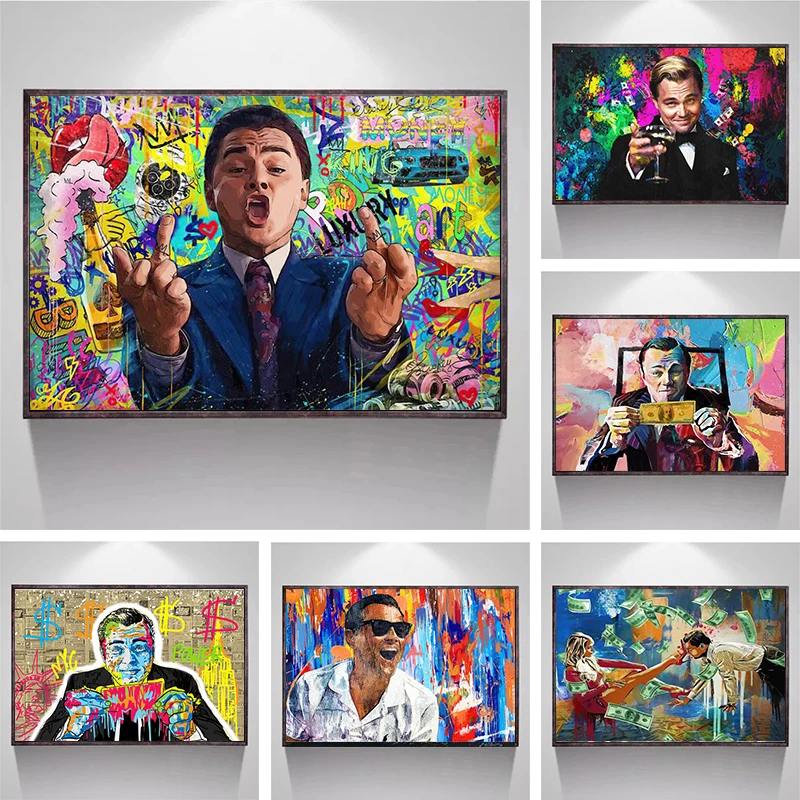 Постеры с изображением волка на стену улицы, граффити, Леонардо, доллар, плакаты, печать на холсте, картина на стену, картина для гостиной, домашний декор