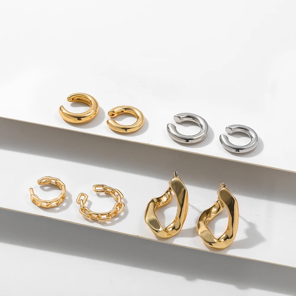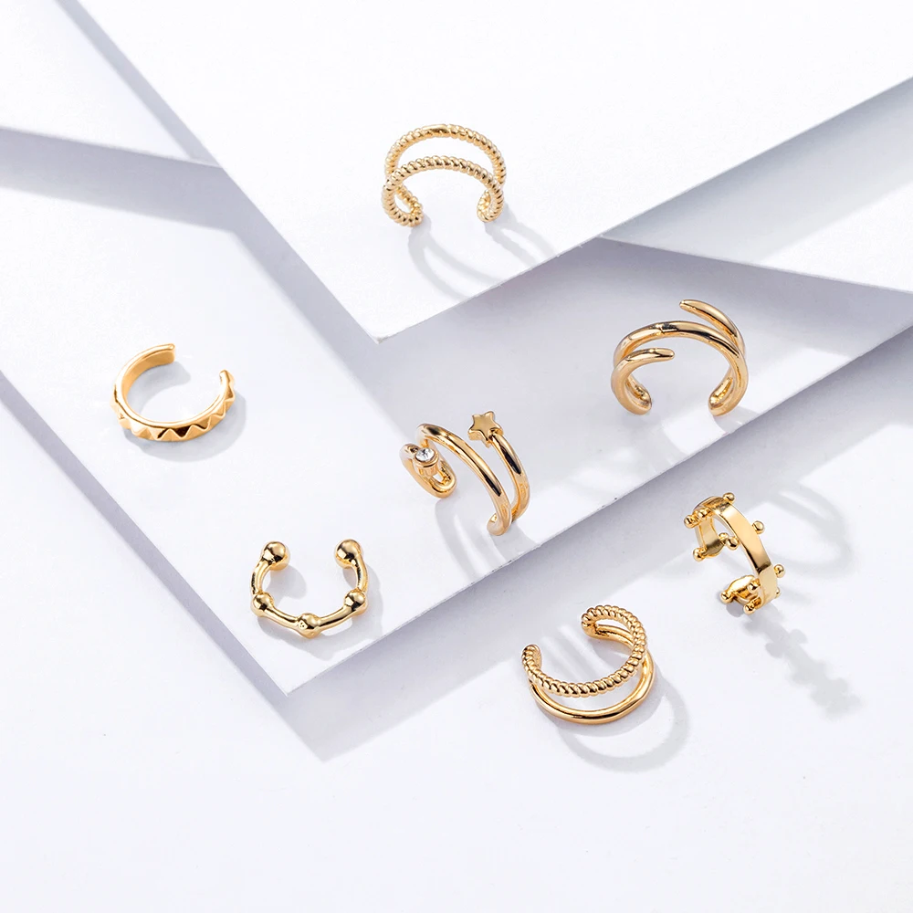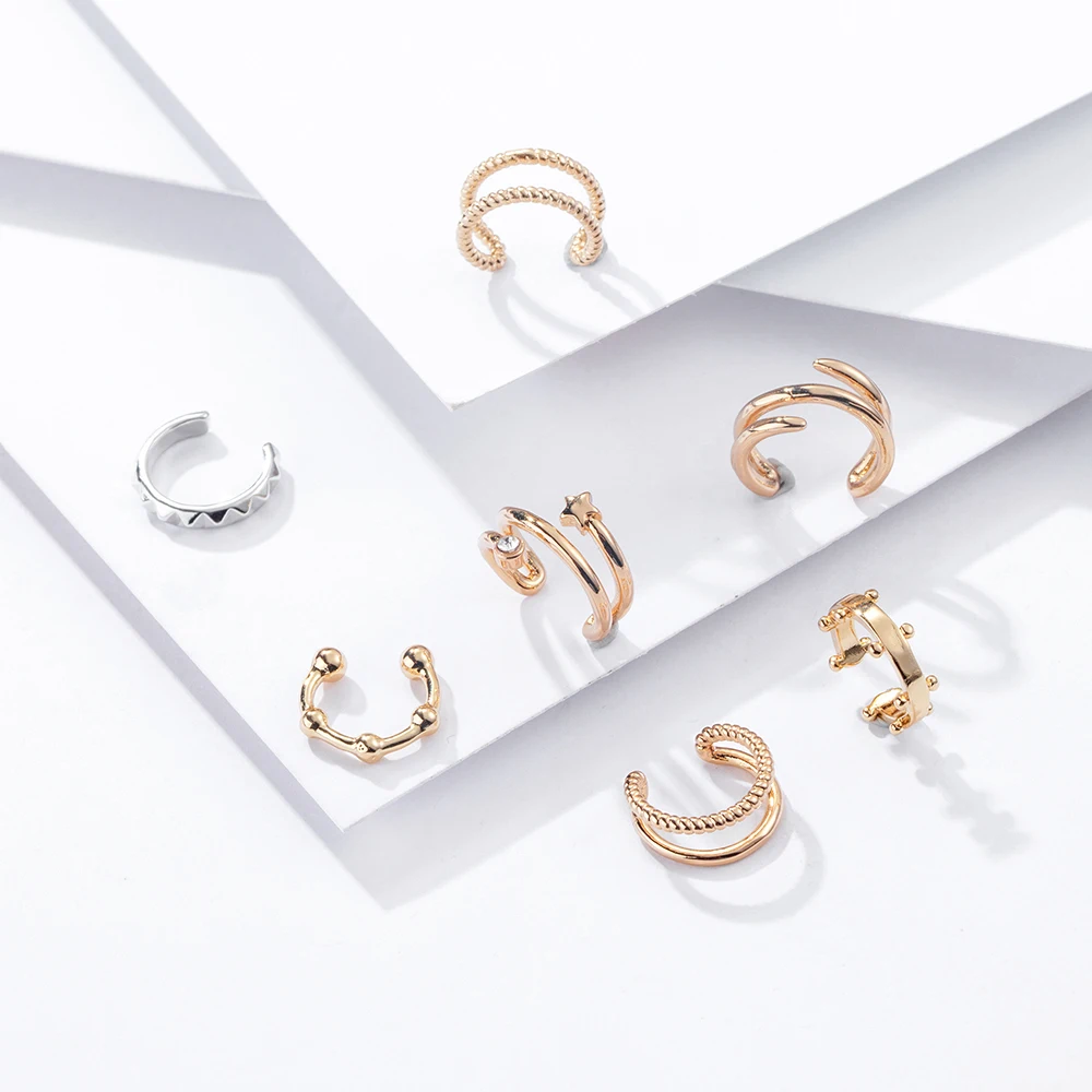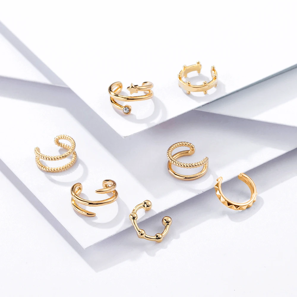 Золотые манжеты для ушей, поддельные серьги-каффы для завивки хряща, не пирсинг, спиральные зажимы для ушей, мужские ювелирные изделия, подарки