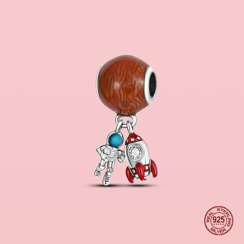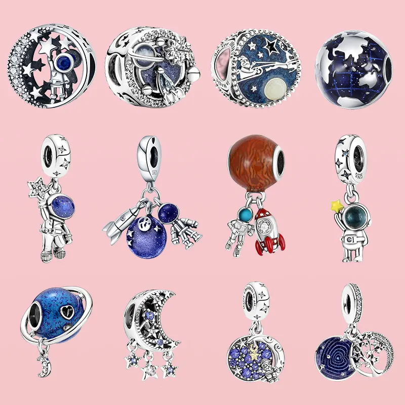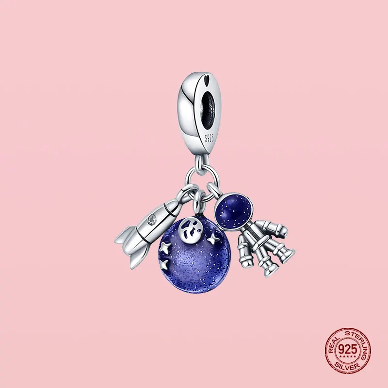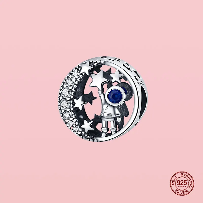 Кулон из серебра 100% пробы в виде астронавта, земли, Луны, звезды