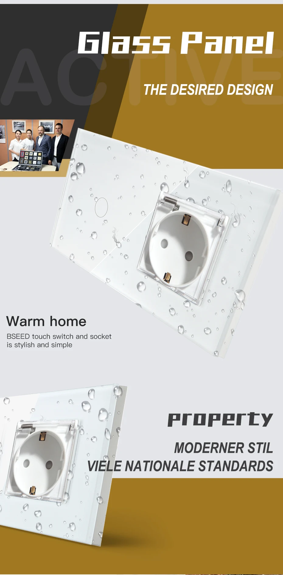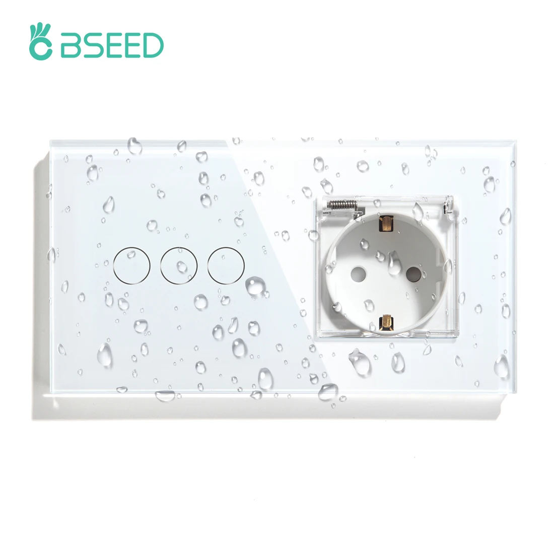 Настенная розетка с крышкой BSEED, выключатель с сенсорным выключателем, 123 клавиши, уличная электрическая розетка, Белое и черное стекло