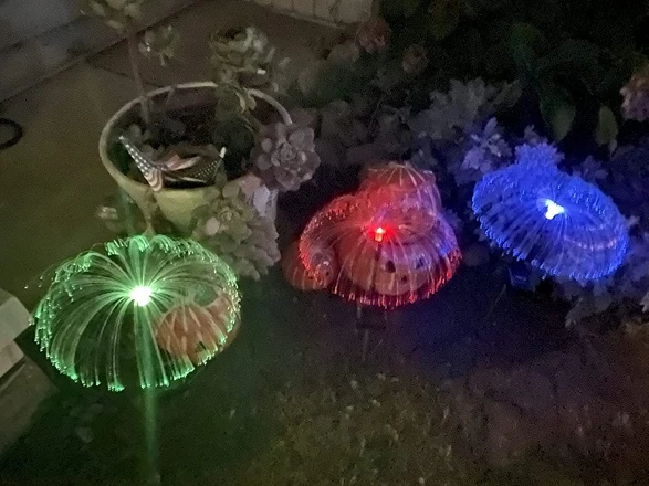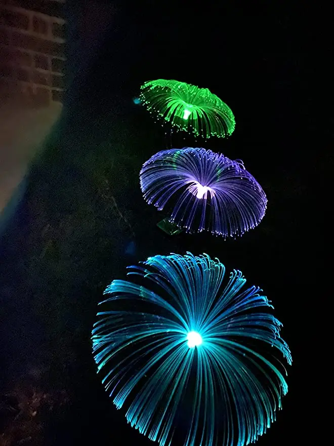 Я разместил эти солнечные Медузы на заднем дворе, и они выглядят потрясающе и красочно в темноте!