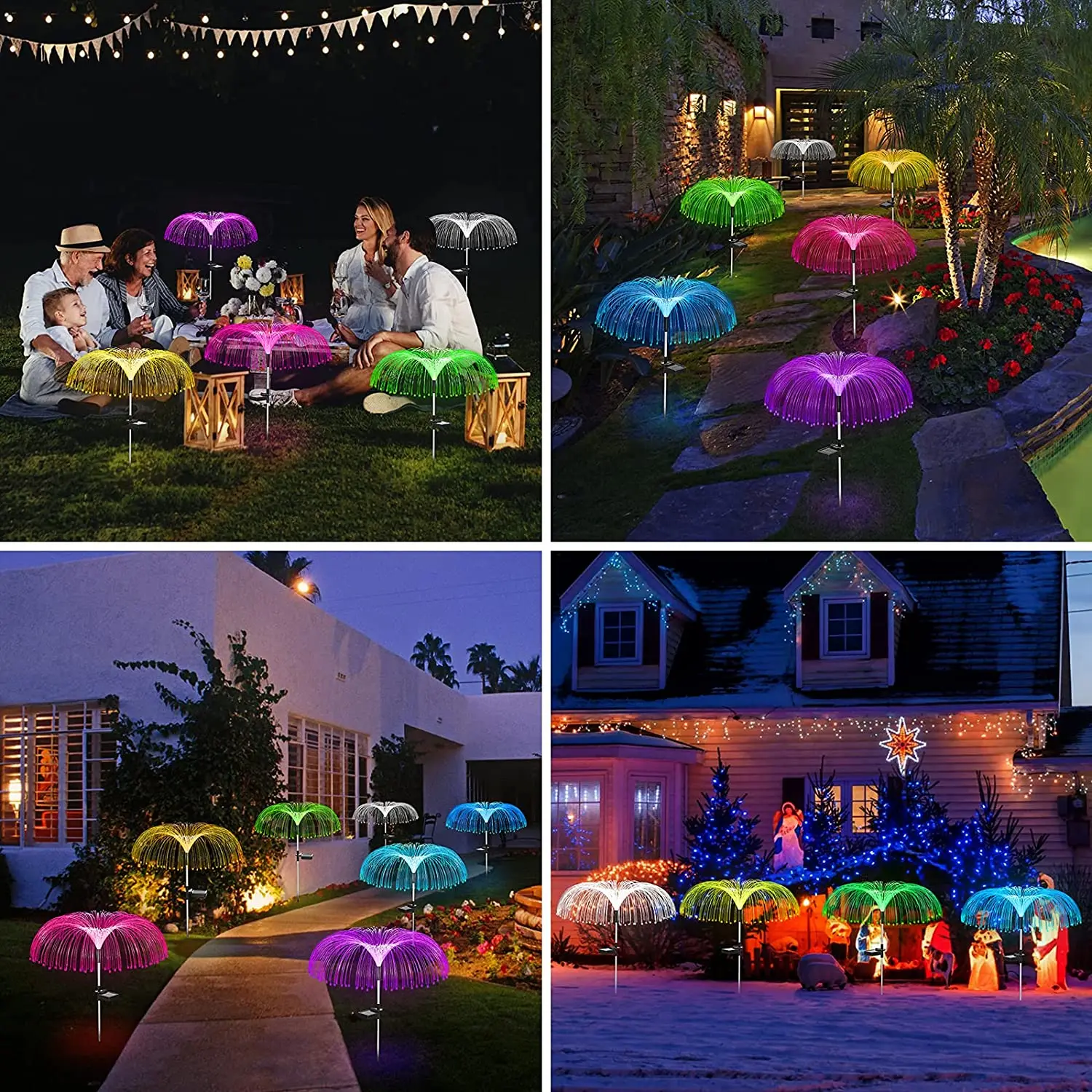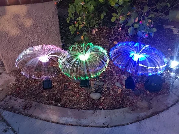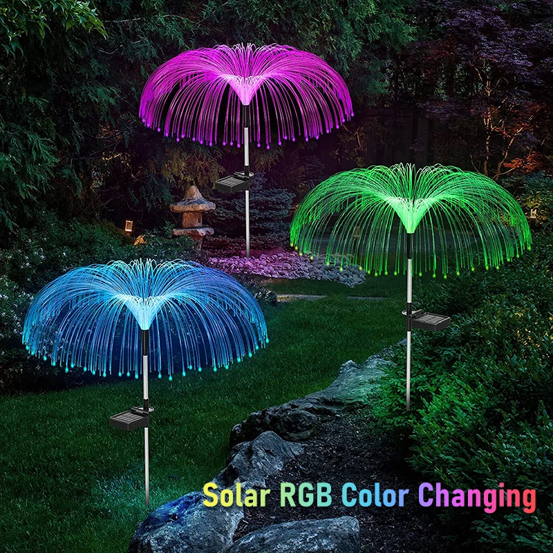 Ламповые бусины из солнечный садовый светильник имеет 7 изменений цвета RGB и хорошая светильник прозрачности. Эти солнечные волоконно-оптические огни создают красоту и очарование, показывая великолепные цвета. Солнечный светильник с Медузой-это изысканные цветочные украшения на садовых террасах в течение дня, и даже потрясающий светильник-праздник ночью.
