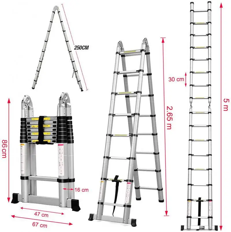 Включает в себя: 5 м складная телескопическая лестница из алюминия (2,5 2,5) ручная работа