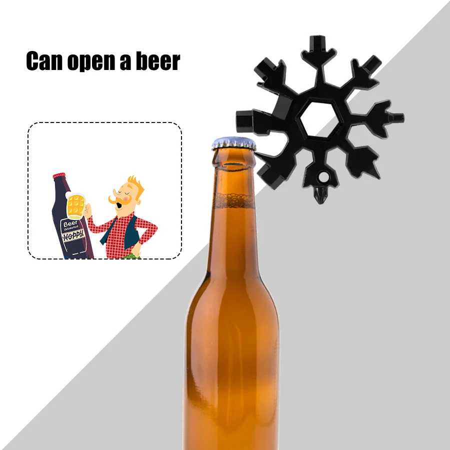 -Изготовлен из нержавеющей стали, уникальный дизайн в форме снежинки -Портативный и легкий, используется для крепления к брелкам или рюкзакам -Многоразовое использование, может использоваться для открытия пивной бутылки, поворота винта, фиксации сноуборда, велосипеда, игрушек и т. д. -Используйте как плоскую отвертку, крестовую отвертку, торцевой ключ и т. д. -Отлично подходит для занятий спортом на открытом воздухе, кемпинга, походов, посадки, приключений, путешествий и многого другого.