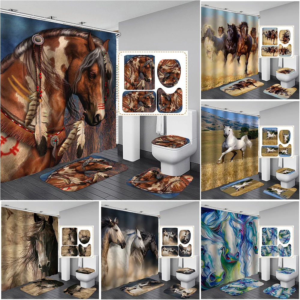 Набор для ванной комнаты Running Horse с принтом, занавеска для душ...
