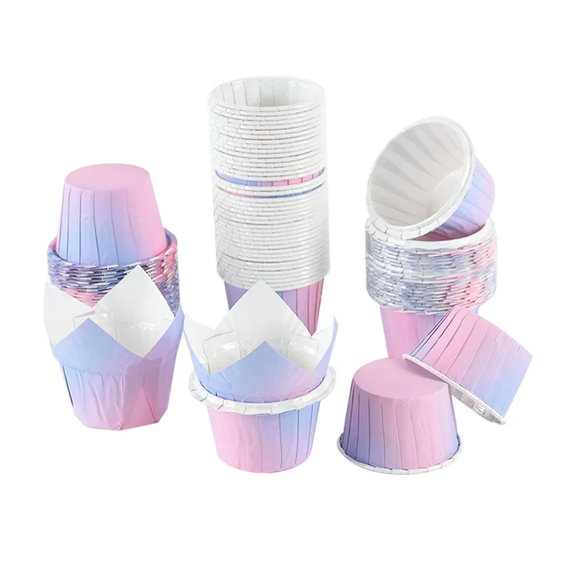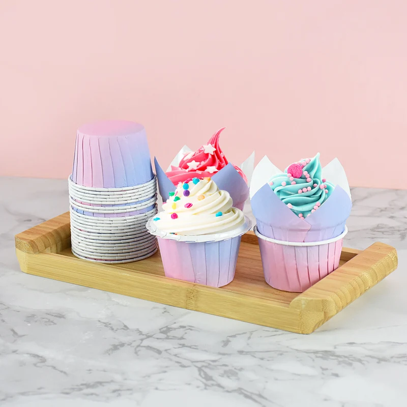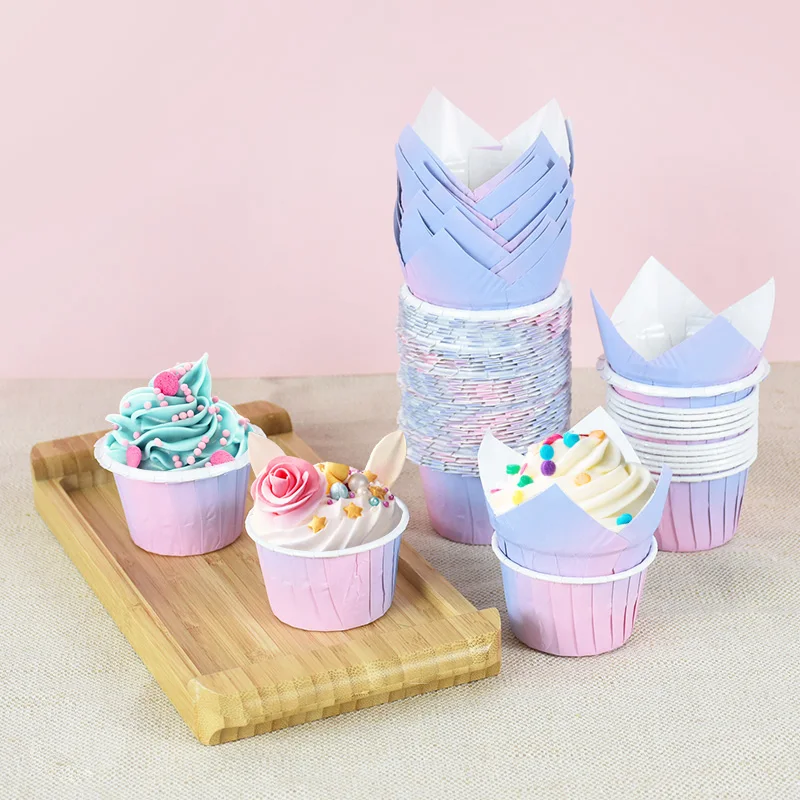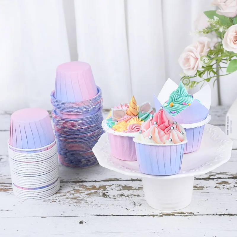 1030 шт градиентный цвет Маффин кекс Лайнер маслостойкая обертка для торта инструменты для выпечки тюльпан бумажный стаканчик для свадьбы День рождения Декор