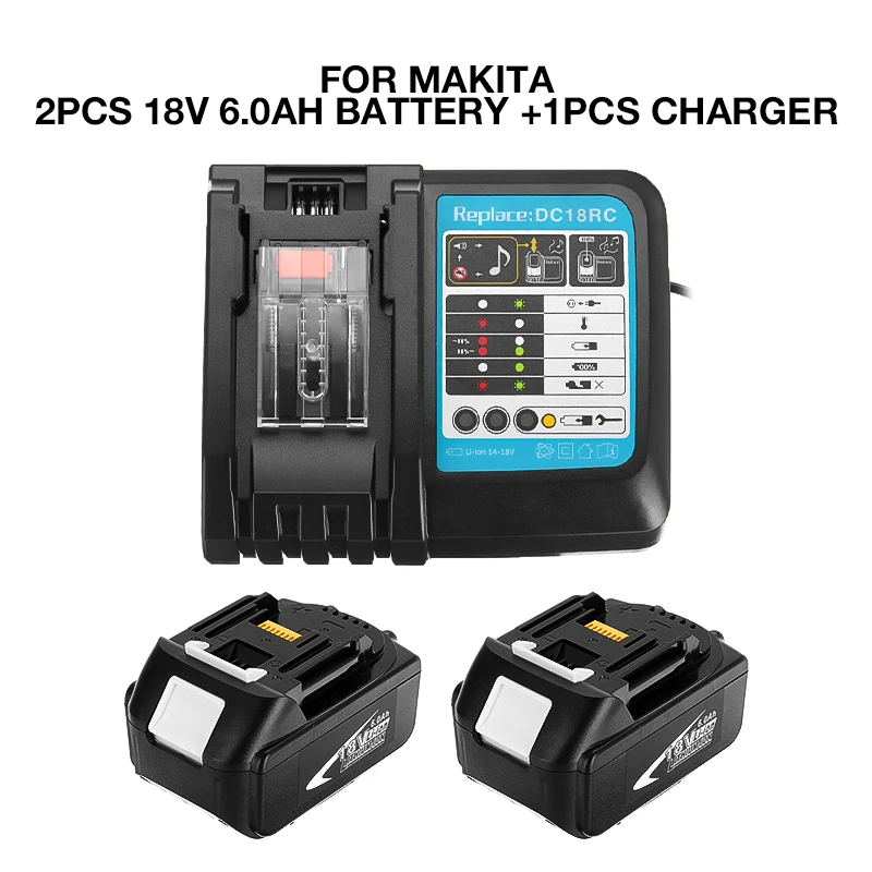 Для электроинструментов Makita, перезаряжаемая батарея с зарядным устройством, li-ion 18 в, 6,0 Ач, сменные батареи BL1840, BL1850BL1830BL1860BLXT400