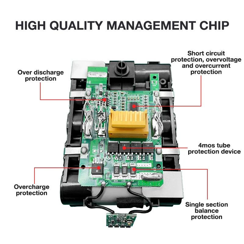 Разряженный баланс, эффективно предотвращает перезарядку и переразрядку каждой ячейки 2. Встроенный чип памяти