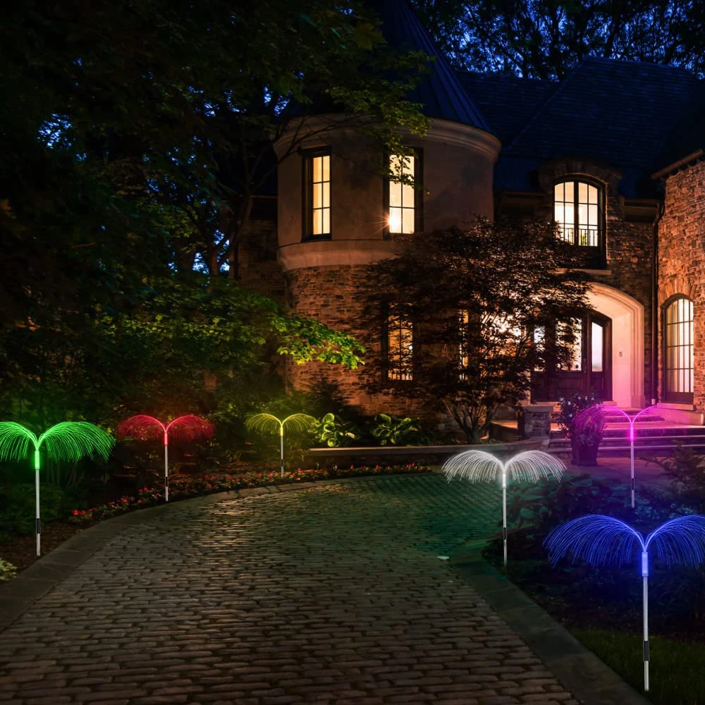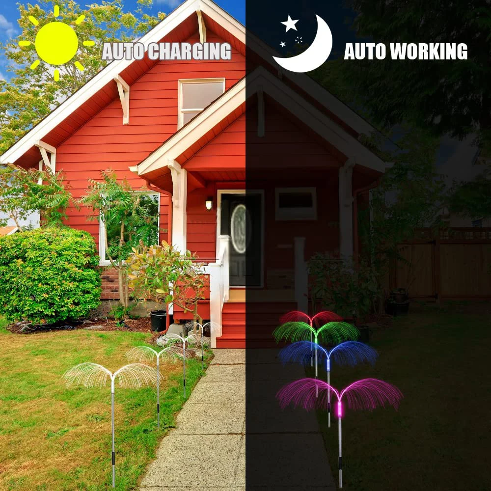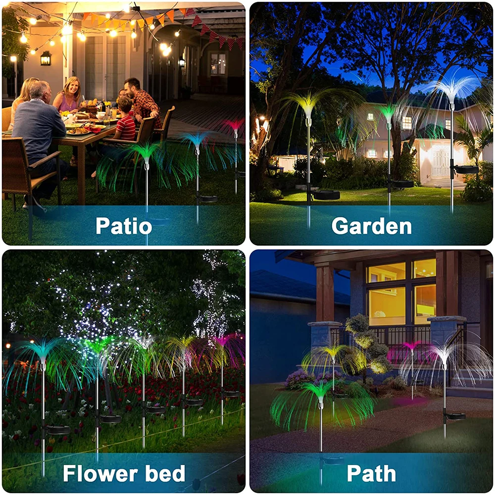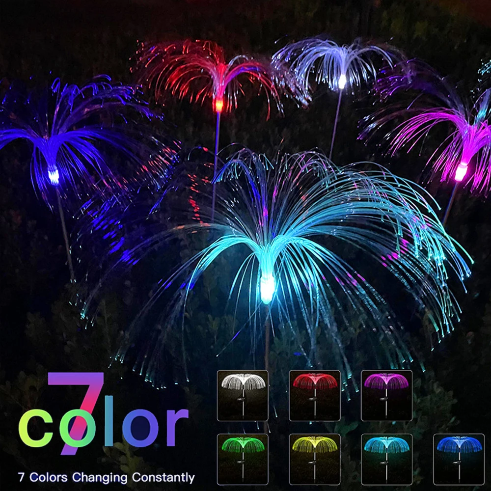 2. [7 Изменение цвета солнечный светильник s] лампа бисер Солнечный садовый светильник s 7 изменений цвета RGB и хорошая светильник с высоким коэффициентом пропускания. Эти солнечные волоконно-оптические огни создают красоту и очарование блестящими цветами, создавая сильную праздничную атмосферу. Солнечный светильник с Медузой-это прекрасные цветочные украшения на Садовой террасе в течение дня и даже потрясающий светильник-праздник ночью;