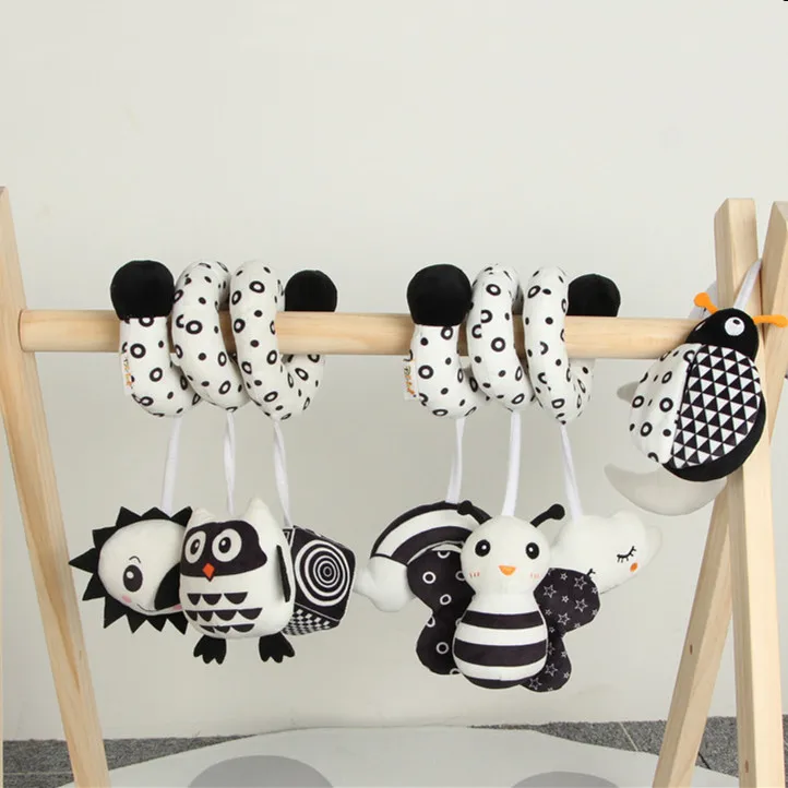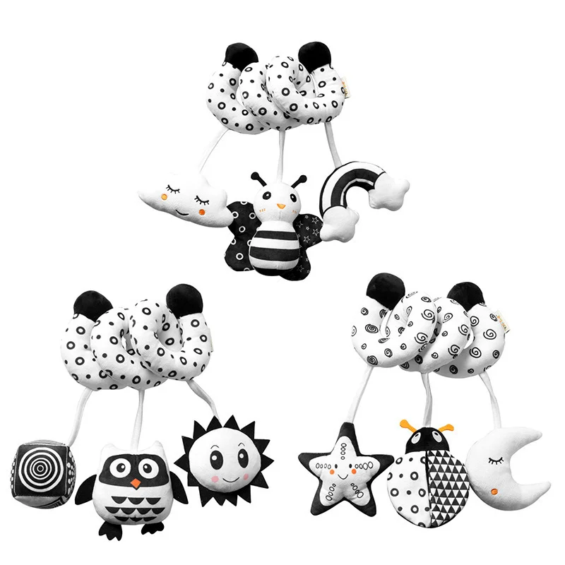 Мягкий Колокольчик для животных без укусов, погремушка для ребенка, черный и белый, датчик для глаз, интерактивное автомобильное сиденье в виде игрушки, погремушка, кроватка, пищалка, подвесная кукла