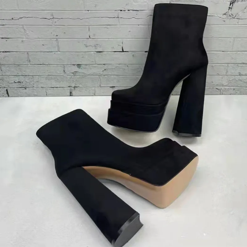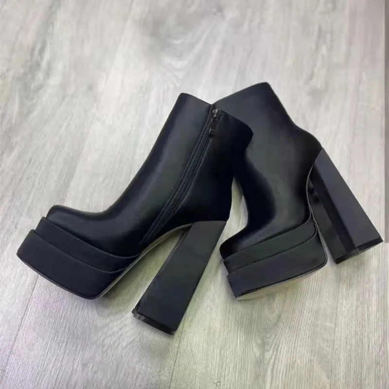 Женские ботильоны с квадратным носком FYMTGYLZ, европейские и американские модные сексуальные ботинки на платформе и молнии, готическая обувь, женская обувь