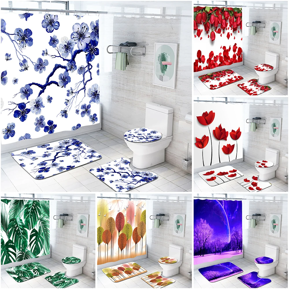 Только занавеска-1 шт. занавеска для душаТолько 3 шт. Набор ковриков: 1 шт. коврик для унитаза + 1 шт. нескользящий коврик + 1 шт. Коврик для пола
