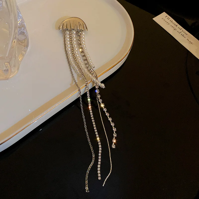 Изысканная Элегантная Брошь в виде Медузы с длинной кисточкой из же...