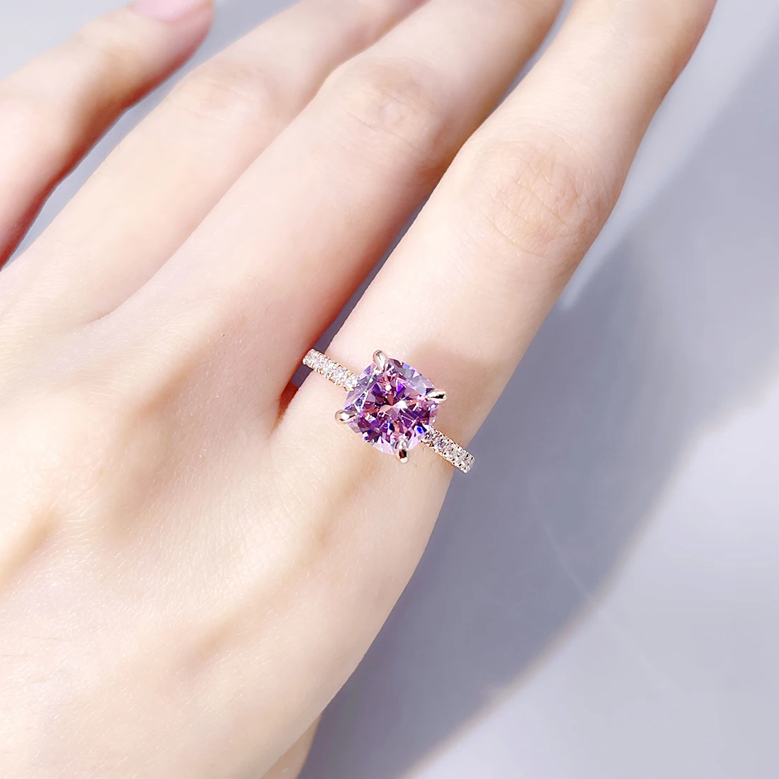 Product nameTianyu Gems Pure 14K Rose Gold Wedding Rings 8mm Cushion Pink Cubic Zirconia