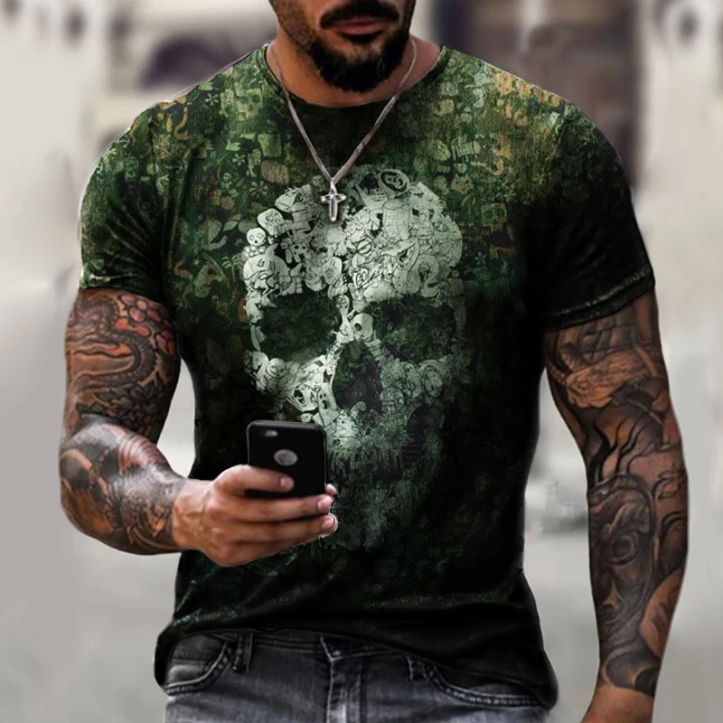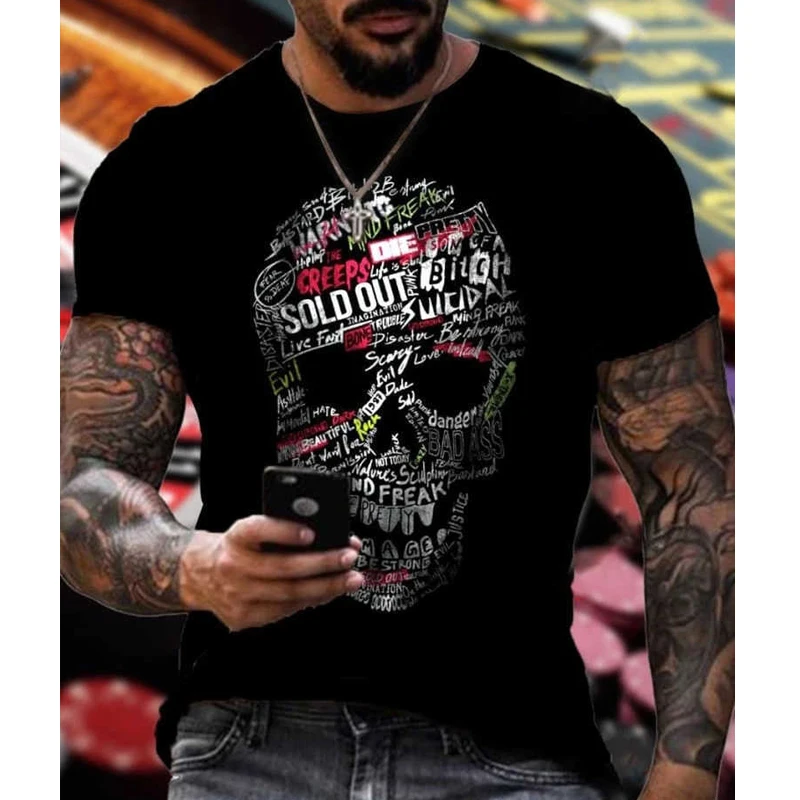 2022 футболка оверсайз с принтом черепа и покера, повседневная мужская летняя очень большая футболка с 3D-принтом, комфортная дышащая футболка, Топы, футболка