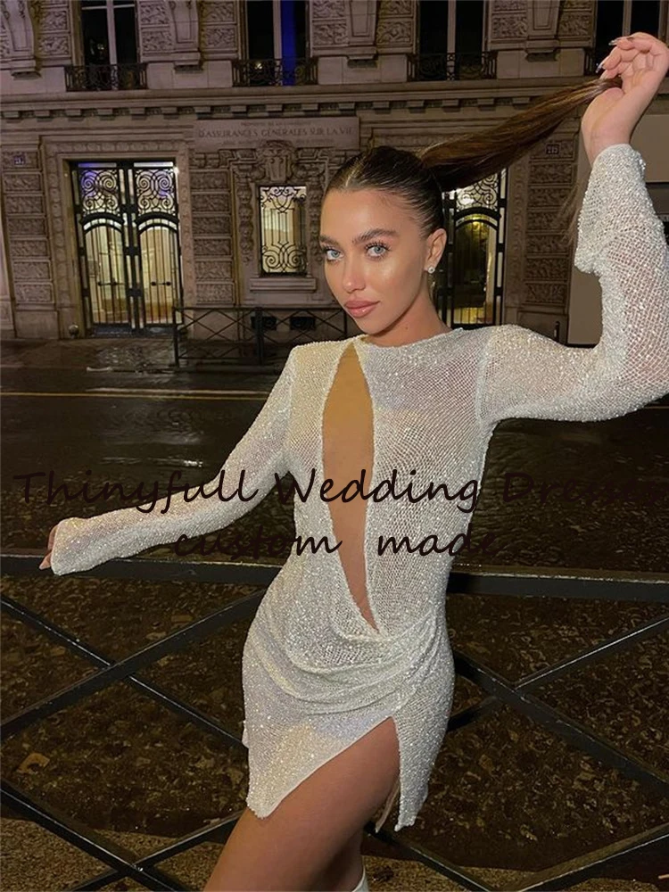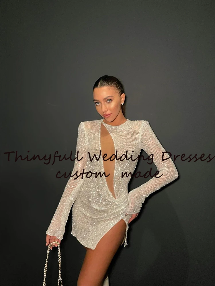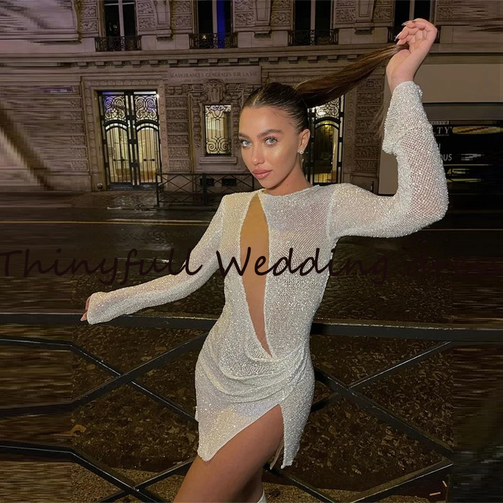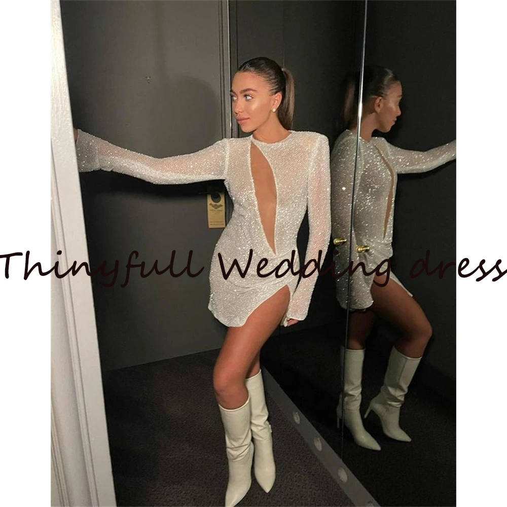 Thinyfull блестящие свадебные вечерние платья в стиле бохо, сексуальные платья с круглым вырезом и длинным рукавом, вечерние мини-платья, платье для выпускного вечера