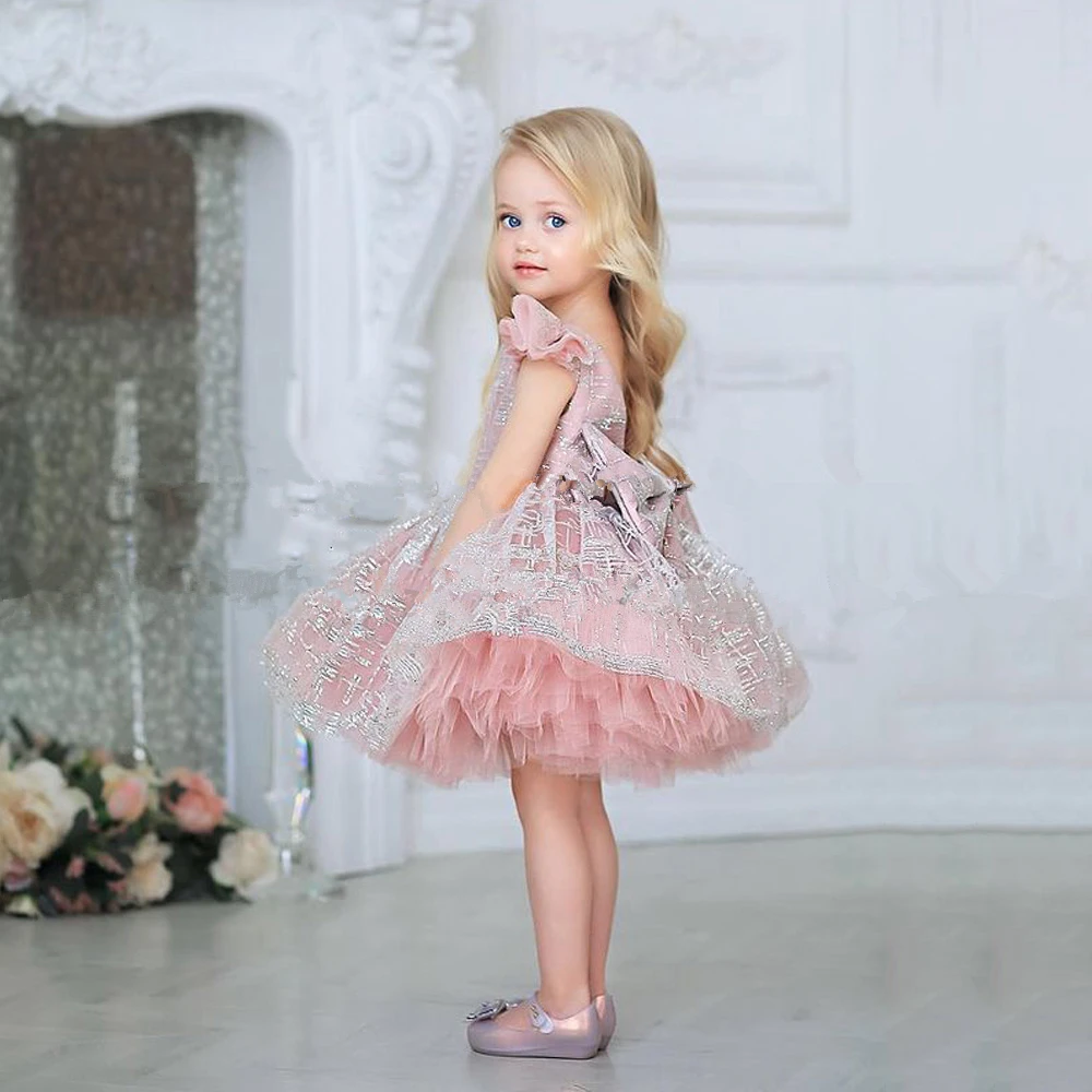 Милое розовое вечернее платье для маленьких девочек на день рождени...