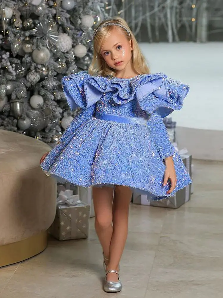 Синие Блестящие пышные праздничные платья для девочек, элегантное п...