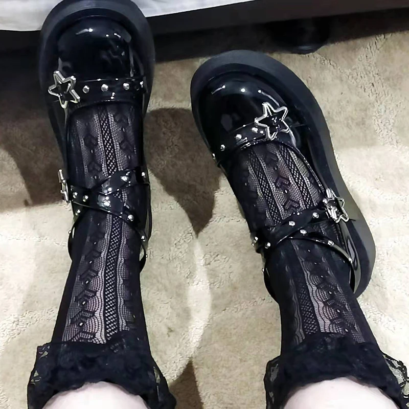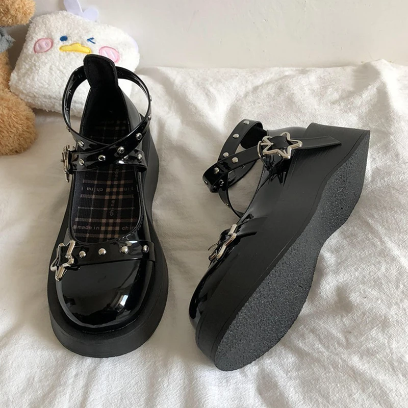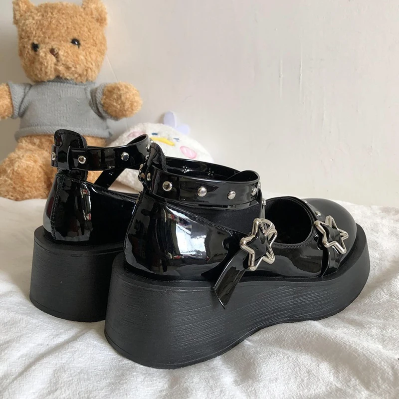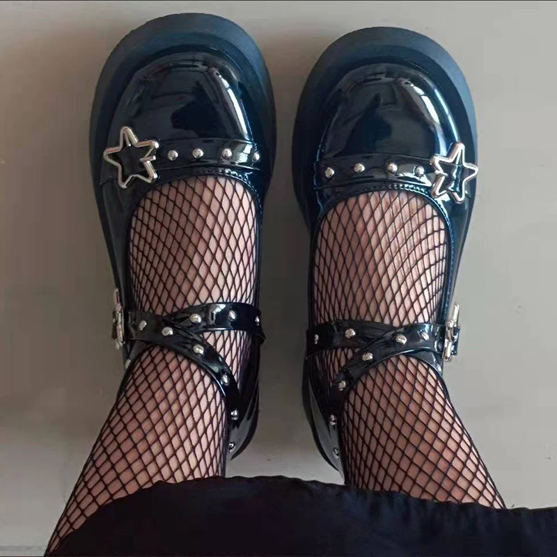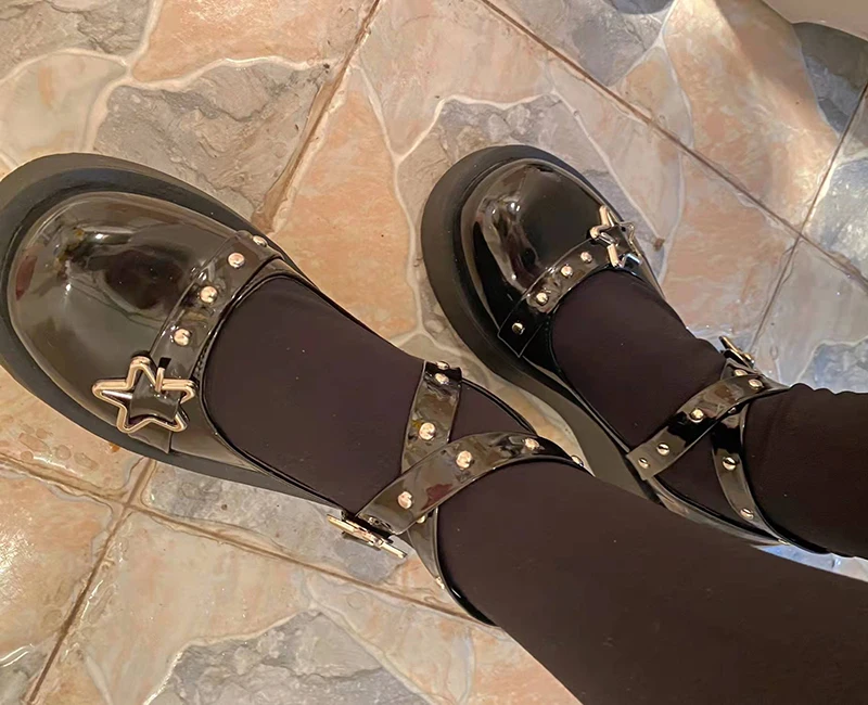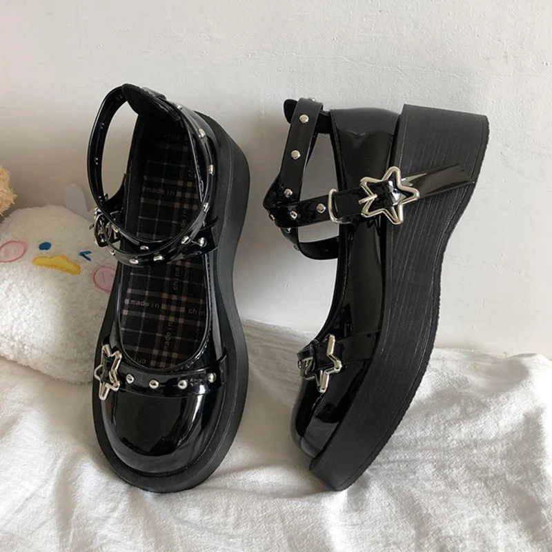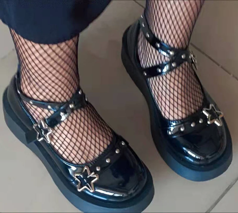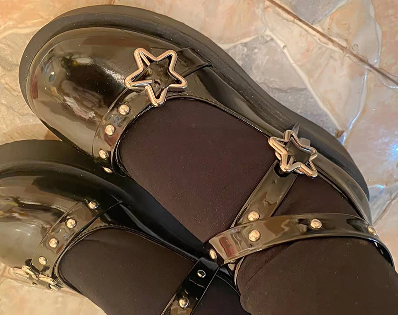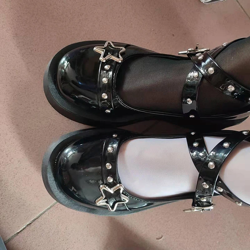 Женские туфли-Лолиты на платформе, с заклепками и ремешком на щиколотке