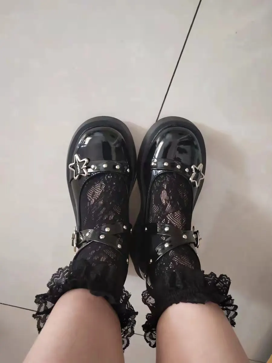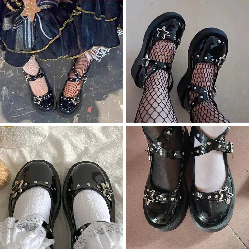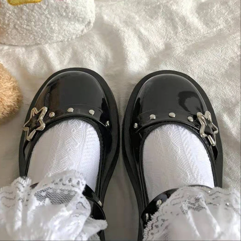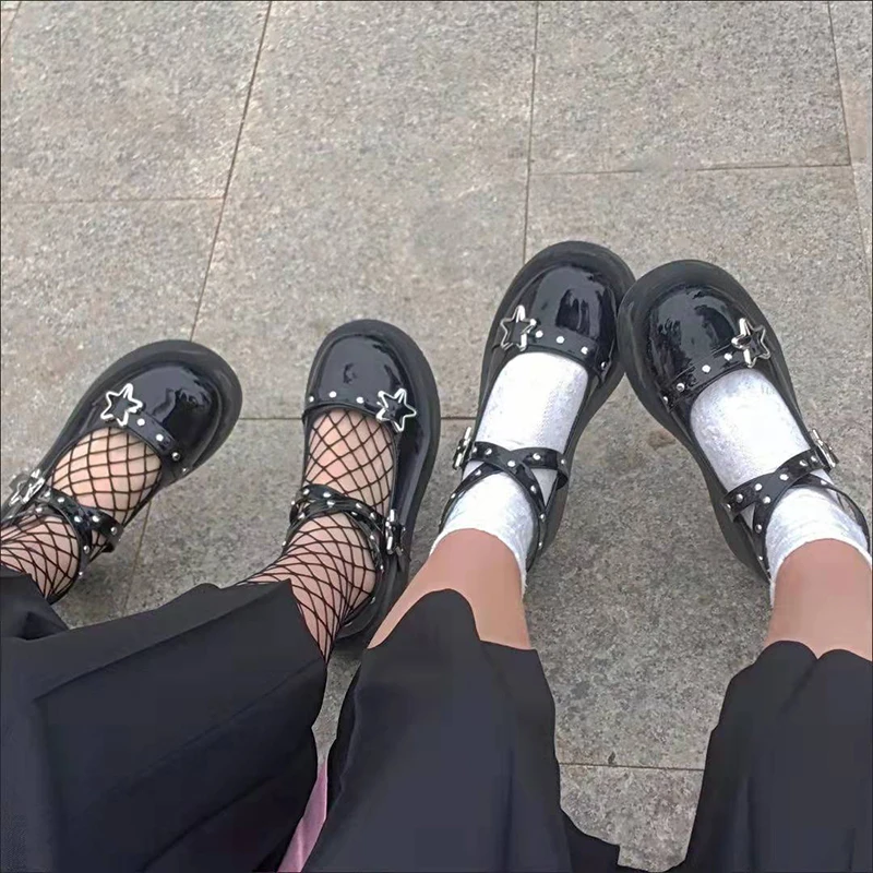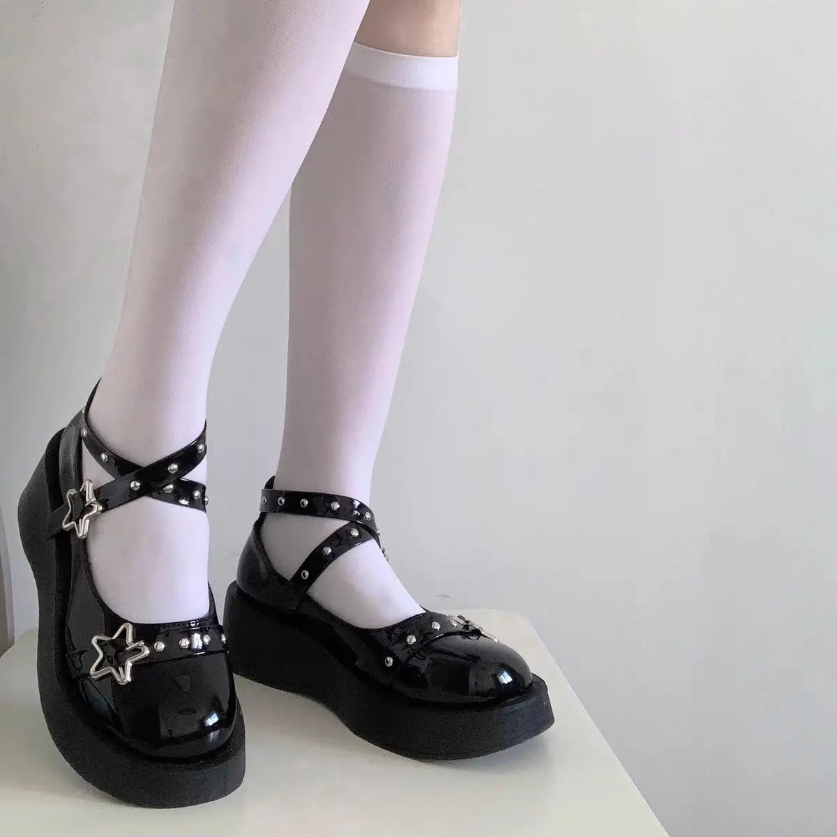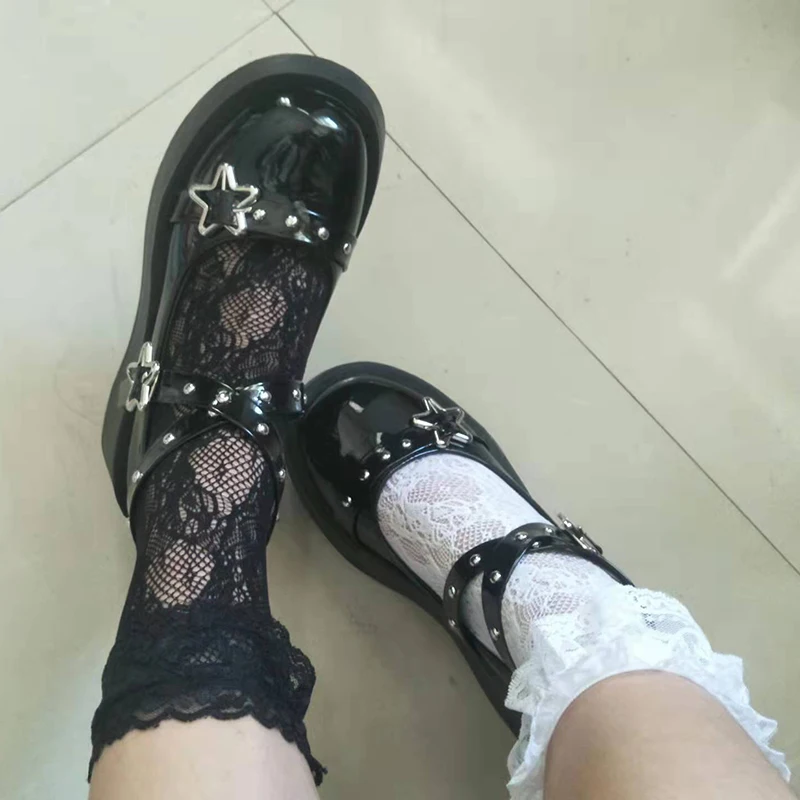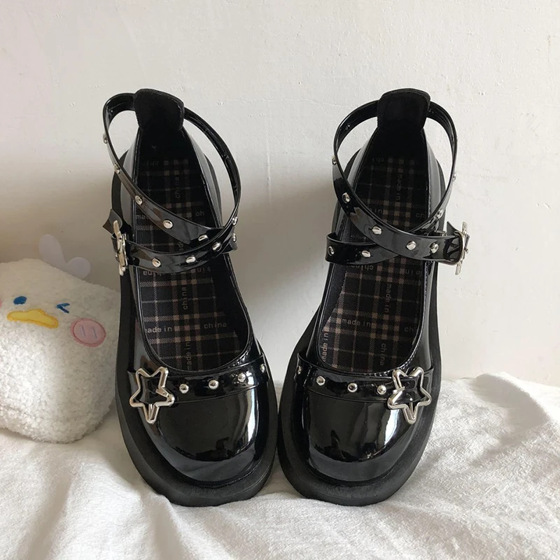 Женские туфли-Лолиты на платформе, с заклепками и ремешком на щиколотке