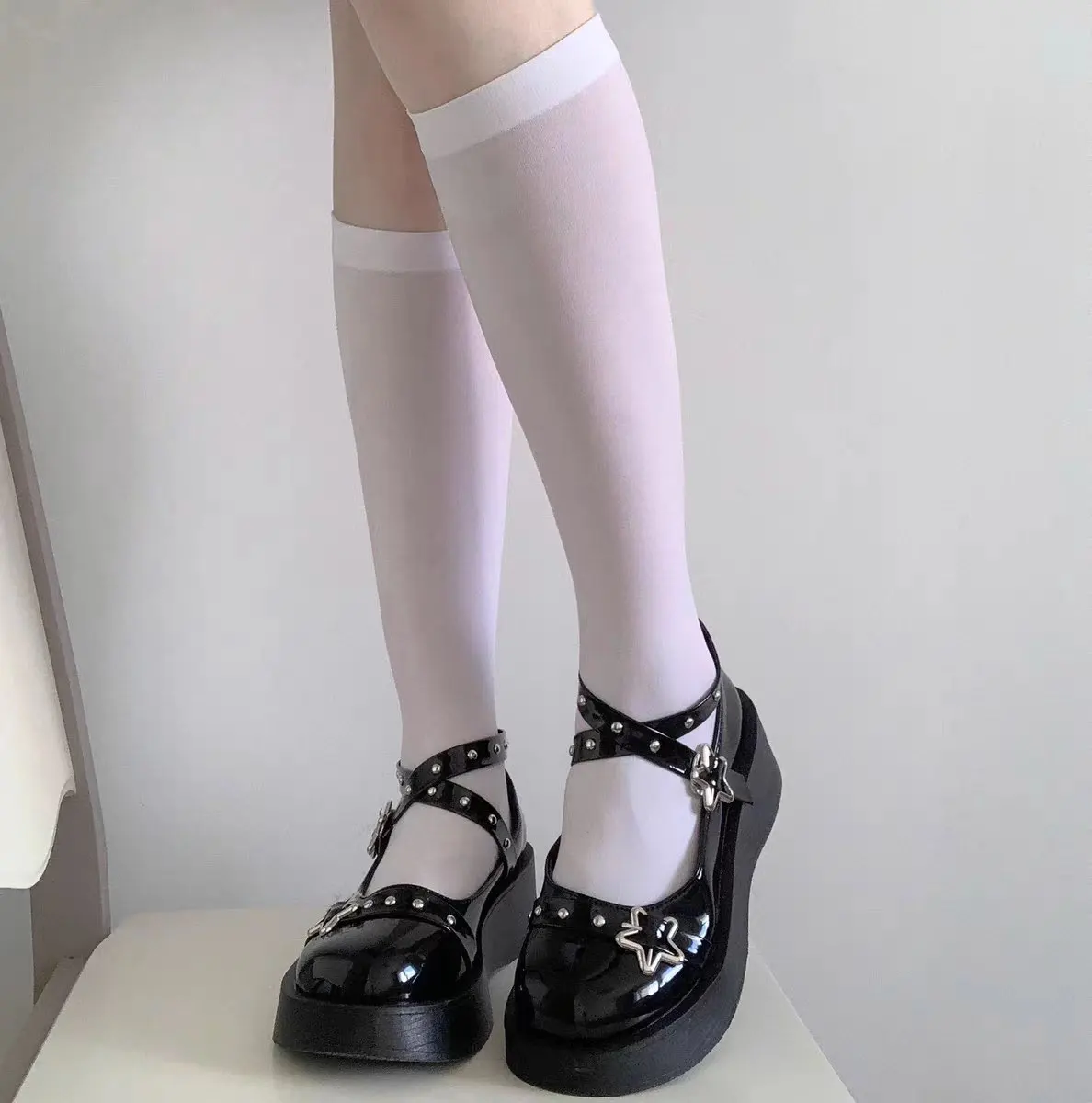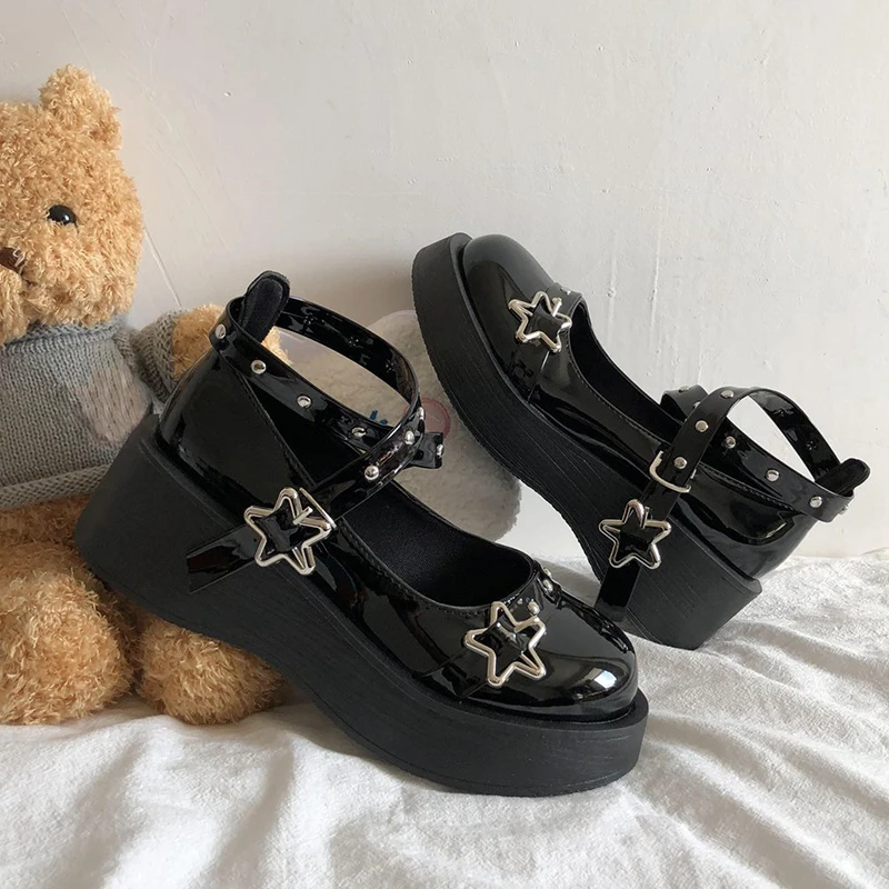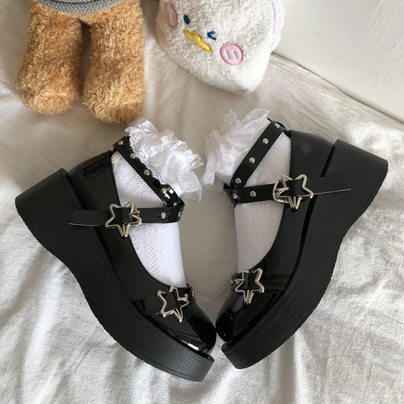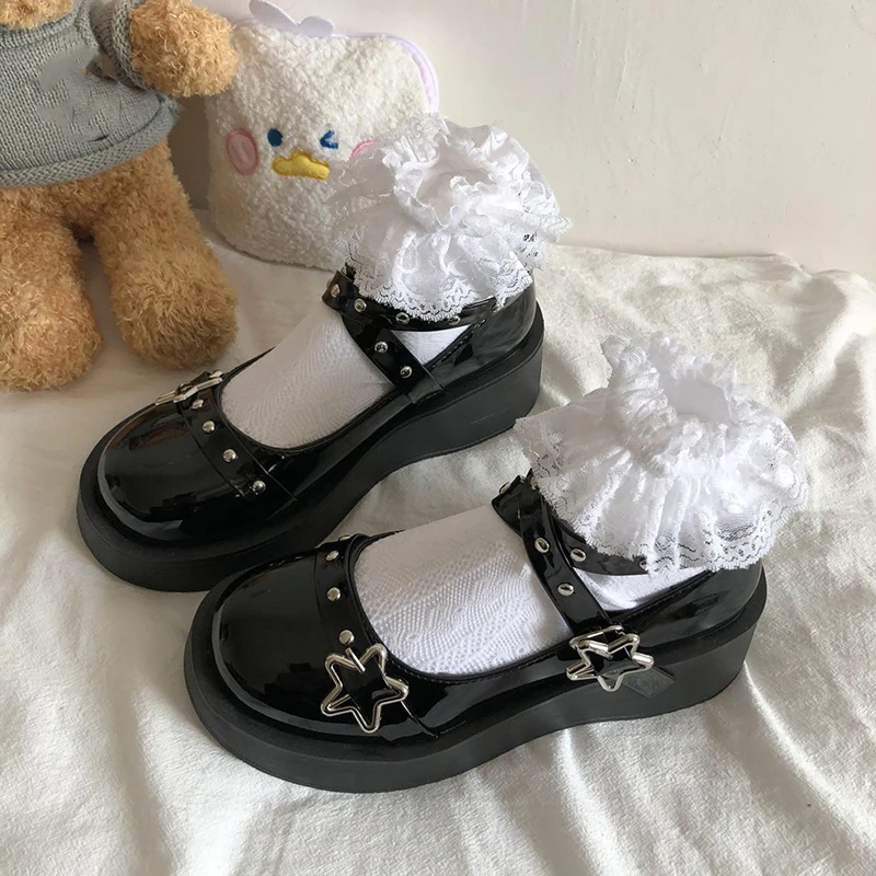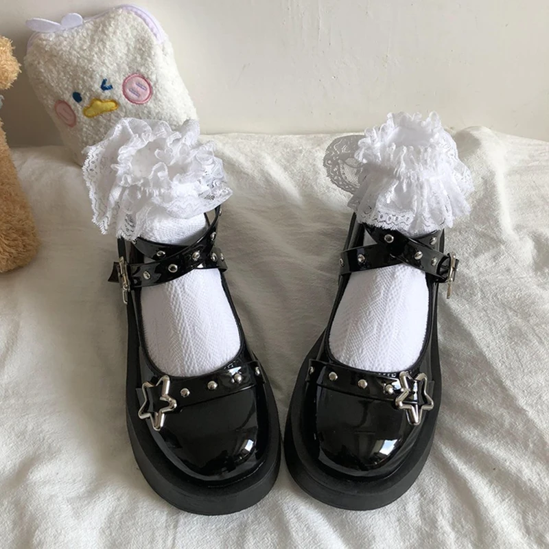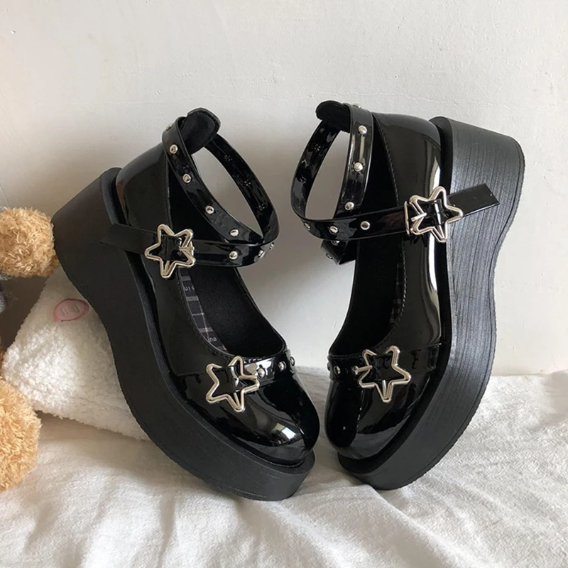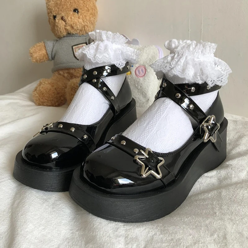 Женские туфли-Лолиты на платформе, с заклепками и ремешком на щиколотке