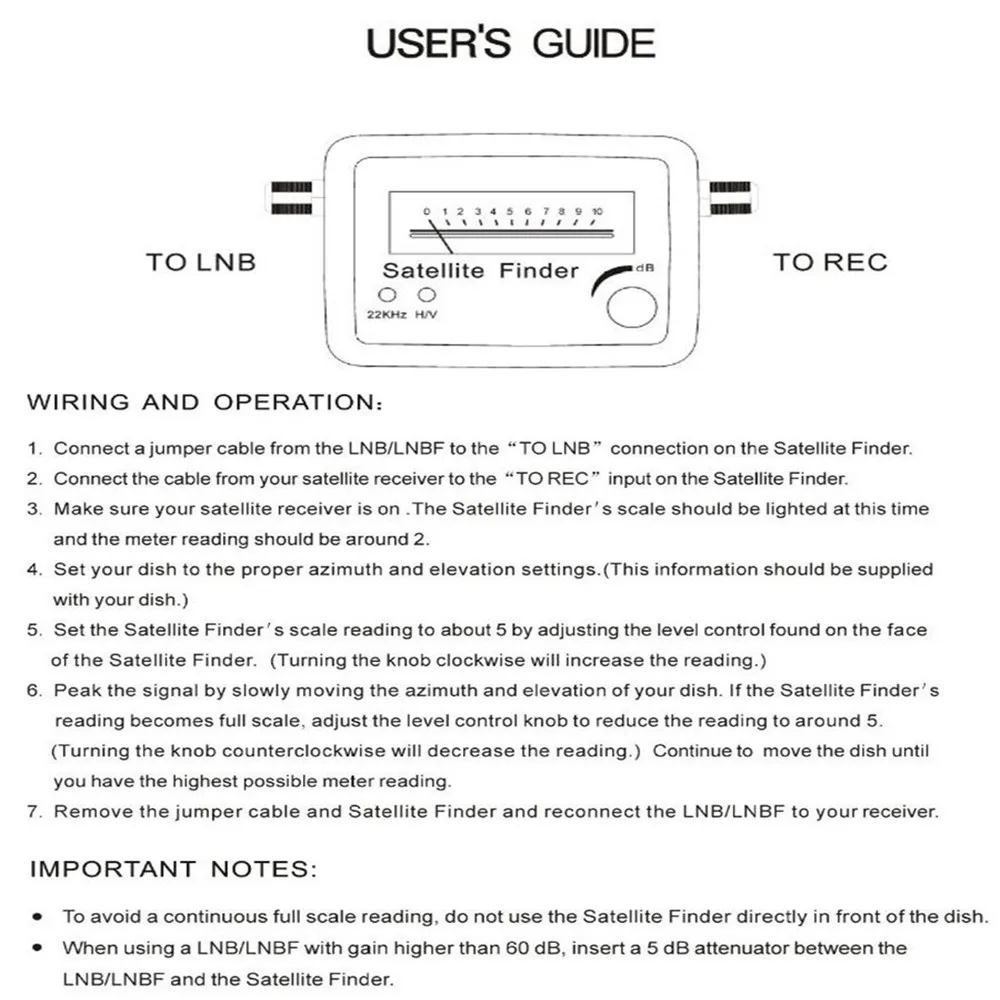 8. Позволяет настроить или максимизировать прием спутникового сигнала на тарелке самостоятельно без помощи друга или необходимости совершать несколько поездок на крышу, простота использования. Удобный инструмент для выравнивания любой спутниковой антенны за считанные минуты