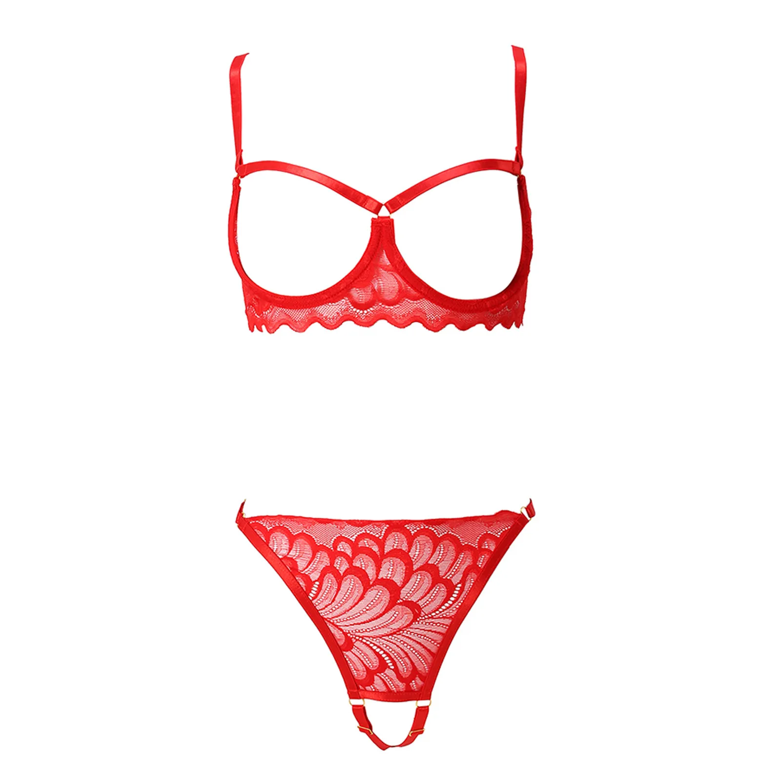 Женский комплект нижнего белья 2022 года, привлекательные кружевные сетчатые Открытые бюстгальтеры, трусики с вырезами, костюм из двух предметов, красный комплект нижнего белья, Babydolls