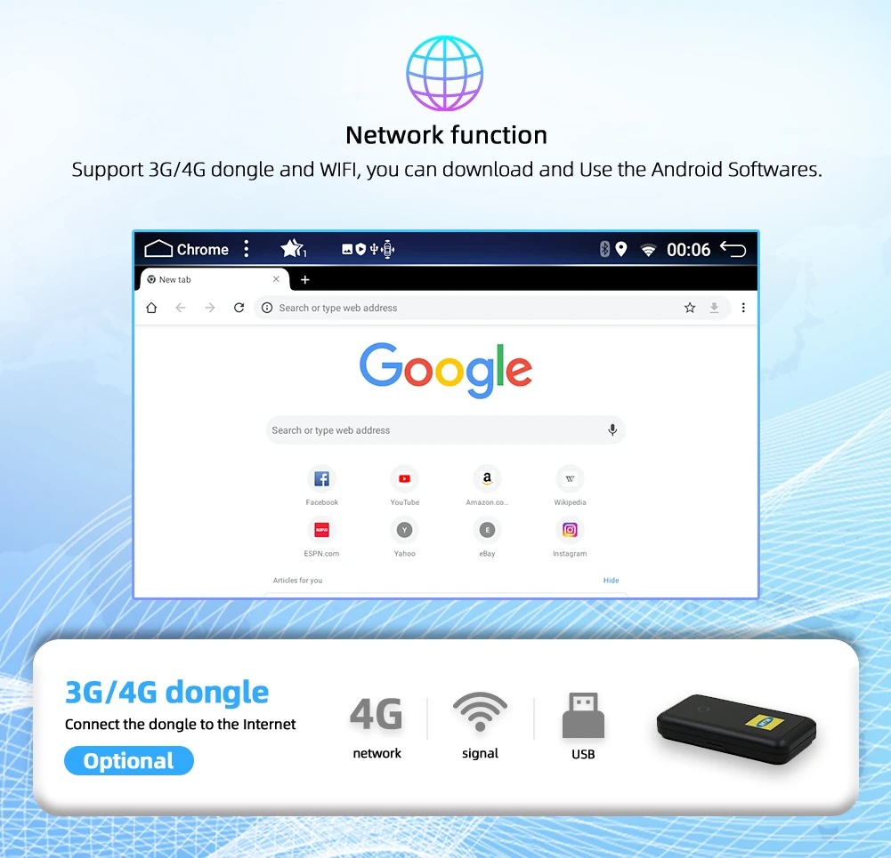 optional4G Dongle,Digital TV,OBD,External microphone,DVR
