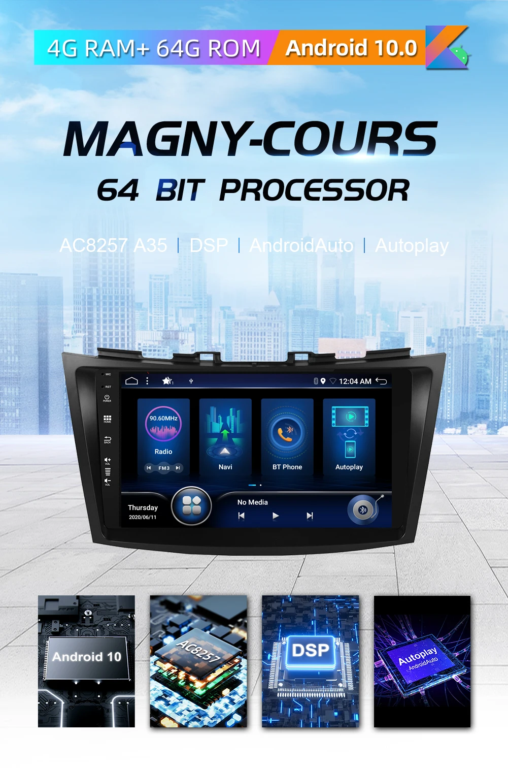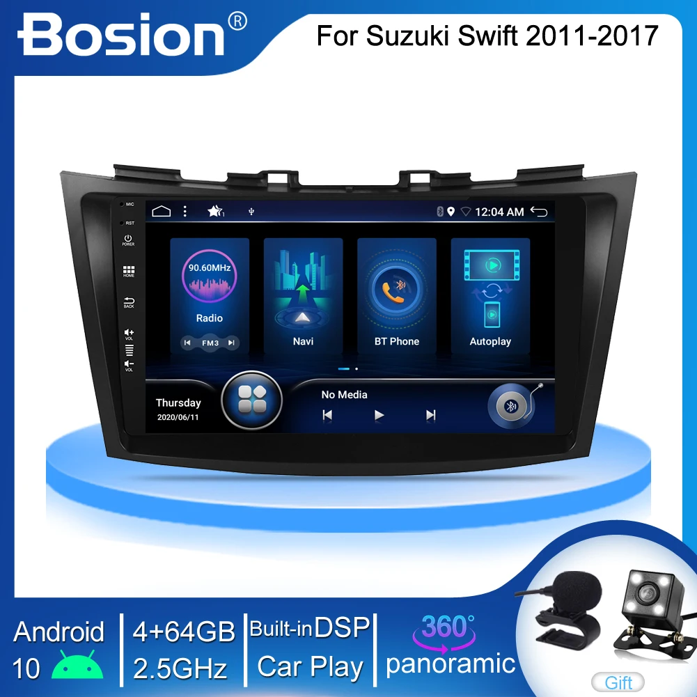 Автомобильный мультимедийный плеер Bosion, проигрыватель на Android 10, 4 Гб ОЗУ, 64 Гб ПЗУ, с GPS, Wi-Fi, для Suzuki Swift 4, 2011-2017, типоразмер 2 din