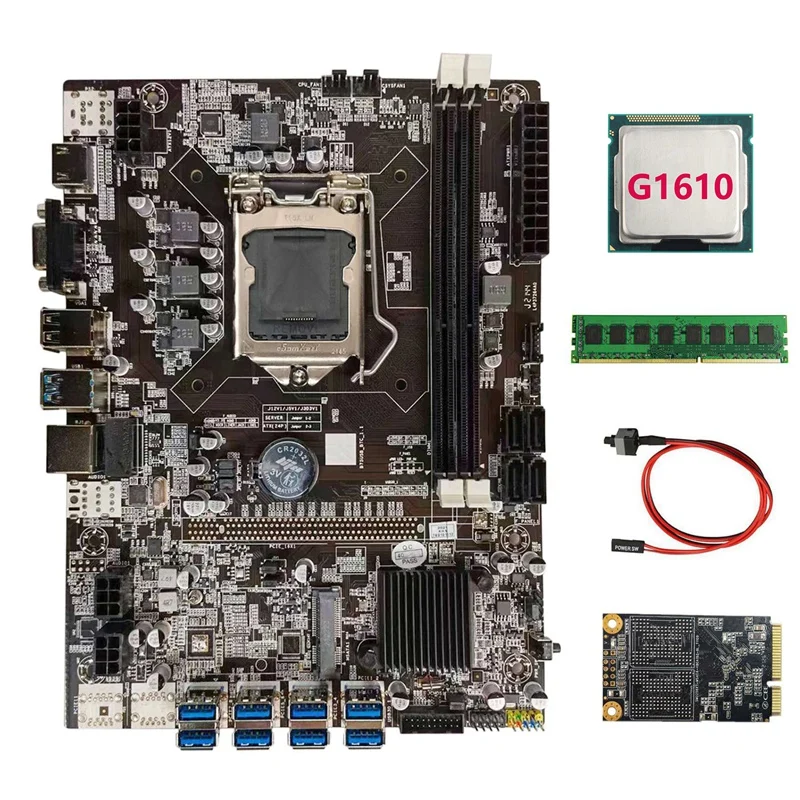 Материнская плата B75 USB BTC для майнинга + процессор G1610 + DDR3 4 Гб 1600 МГц ОЗУ + 128G SSD + кабель переключателя LGA1155 8xpcie на USB B75 BTC плата