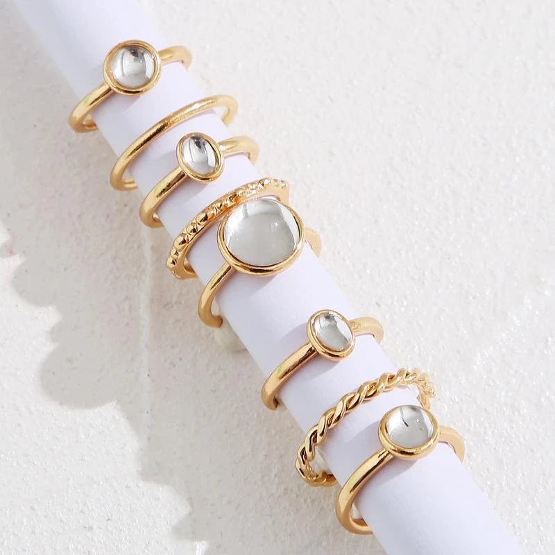 Новинка 2021, Корея, 8 шт.компл., винтажный красочный камень, металлическая цепь, модные геометрические Популярные Кольца для женщин и девушек, ювелирные изделия
